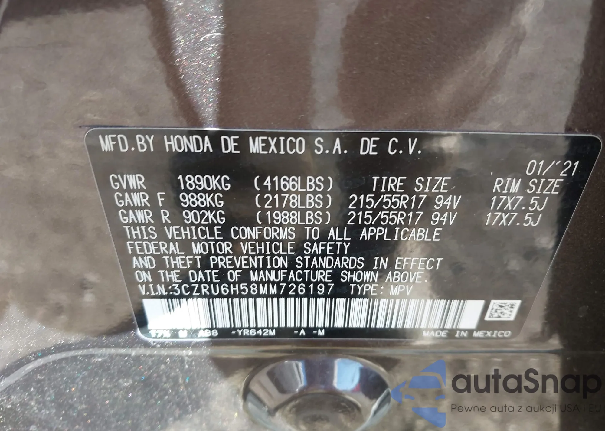 • VIN 3CZRU6H58MM726197