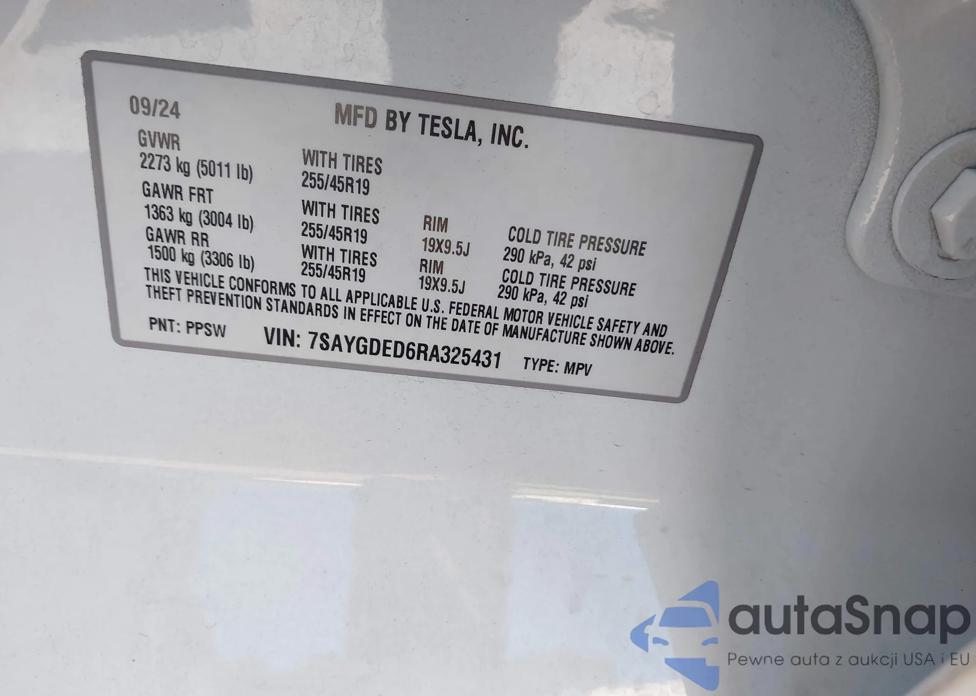 • VIN 7SAYGDED6RA325431