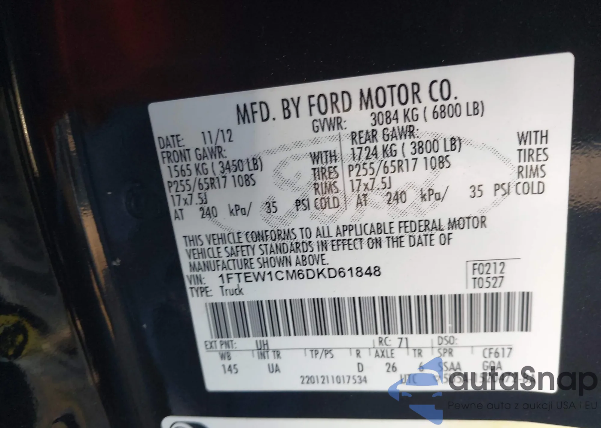 • VIN 1FTEW1CM6DKD61848