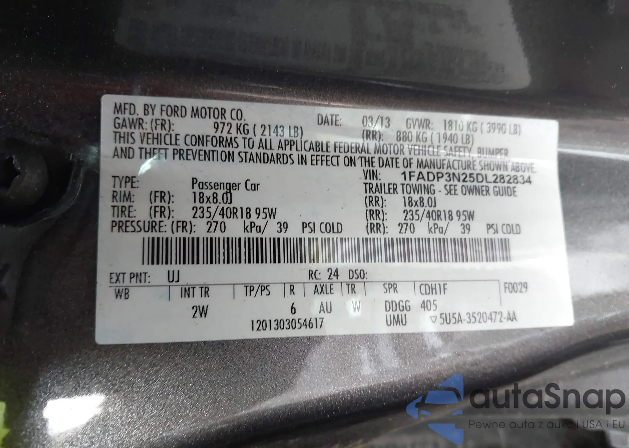 LOT: 43436931 VIN: WBAVC73527KP35734