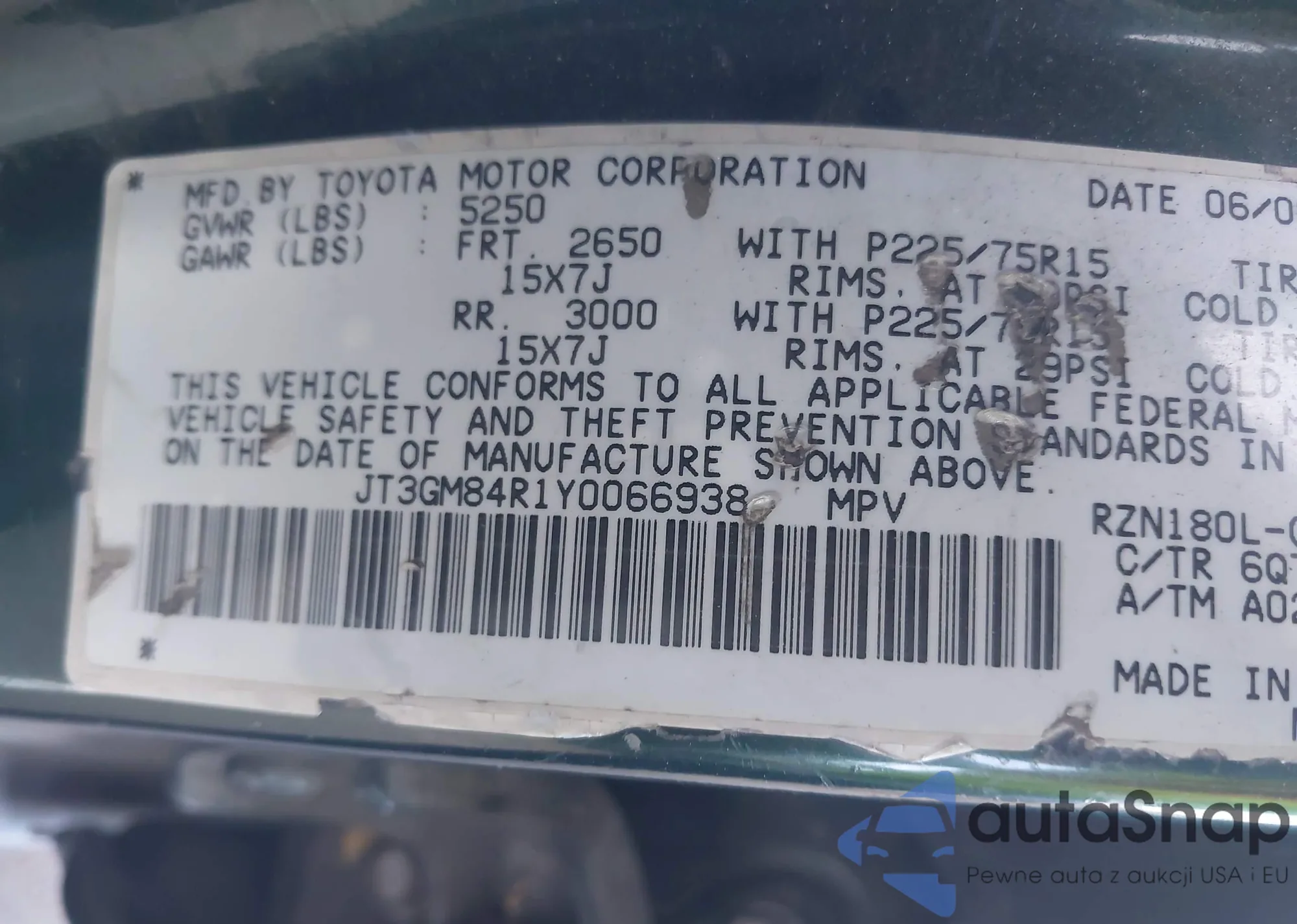 • VIN 4T1BK36B26U081237