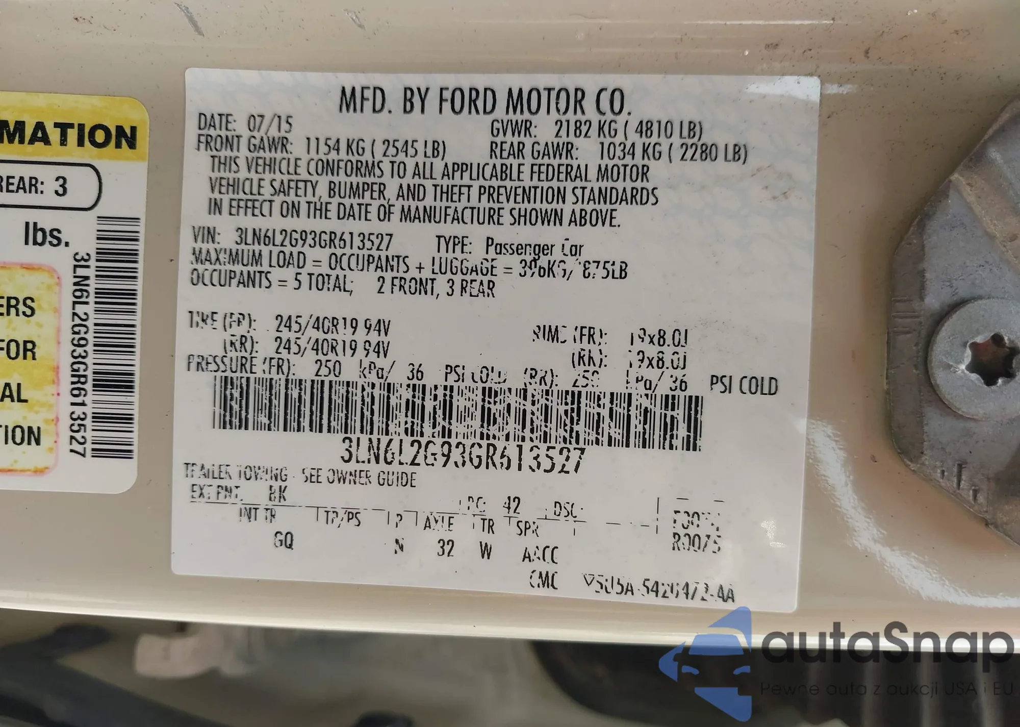 LOT: 42393533 VIN: 3LN6L2G93GR613527