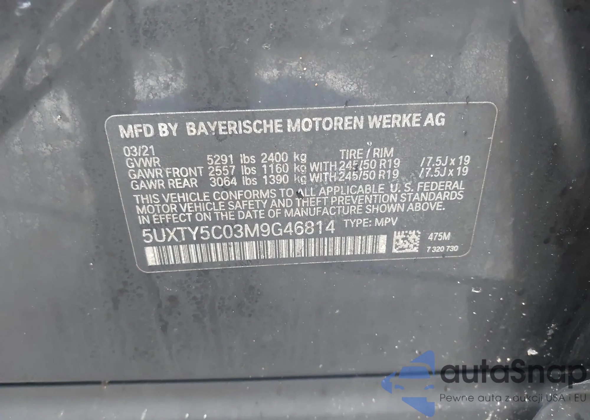 LOT: 42679464 VIN: 5UXTY5C03M9G46814