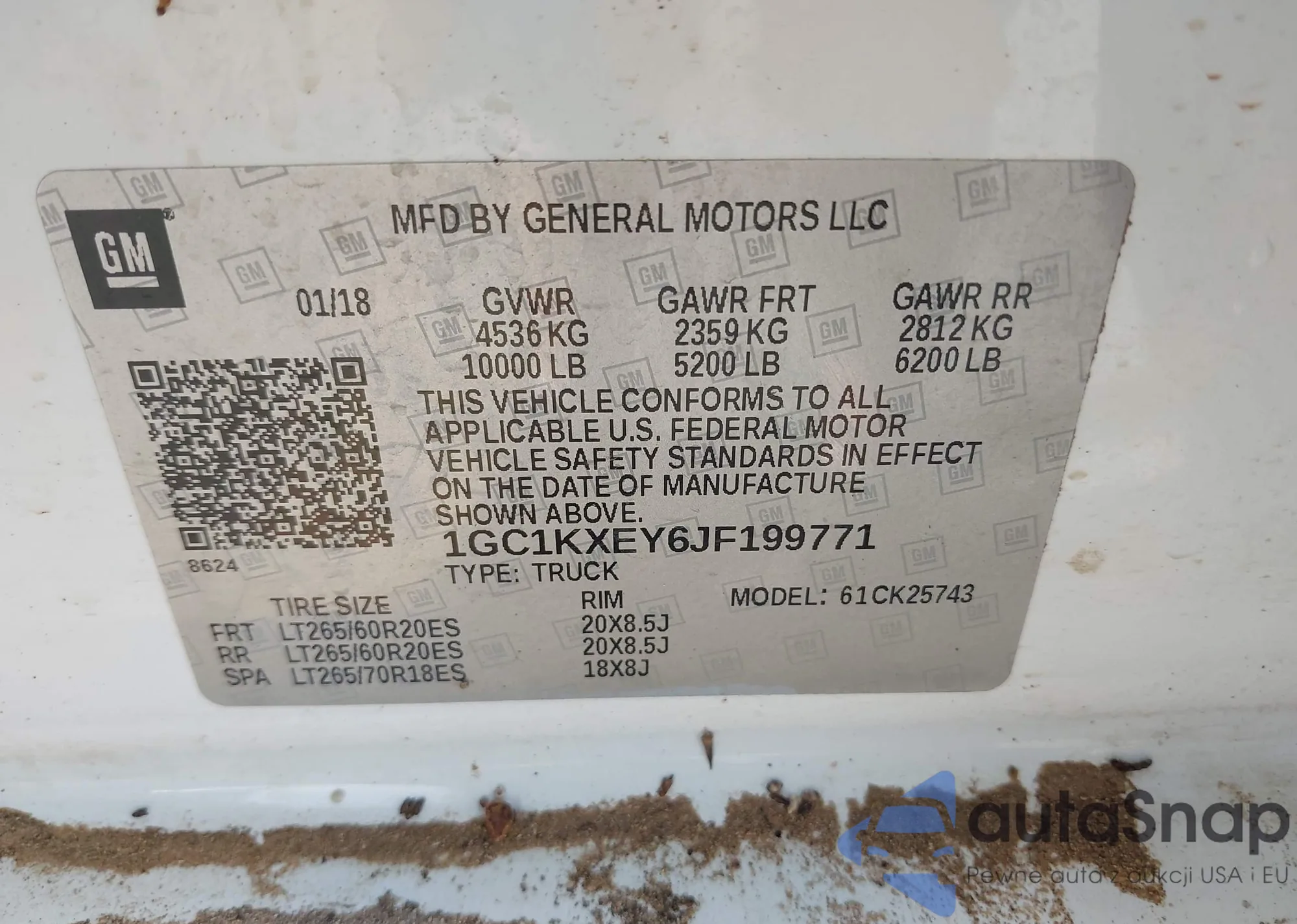 LOT: 42709894 VIN: 1GC1KXEY6JF199771
