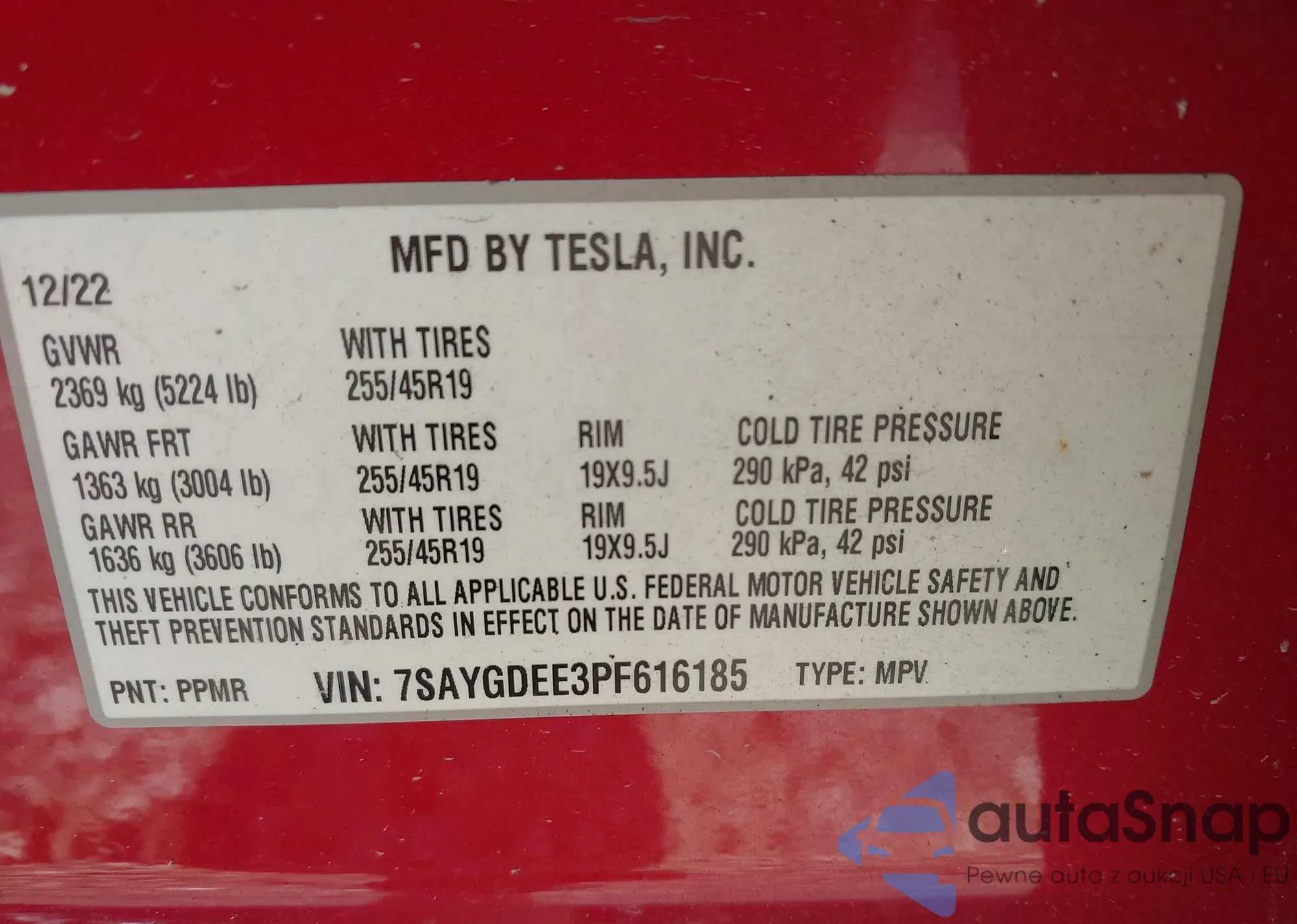 LOT: 42746209 VIN: 7SAYGDEE3PF616185