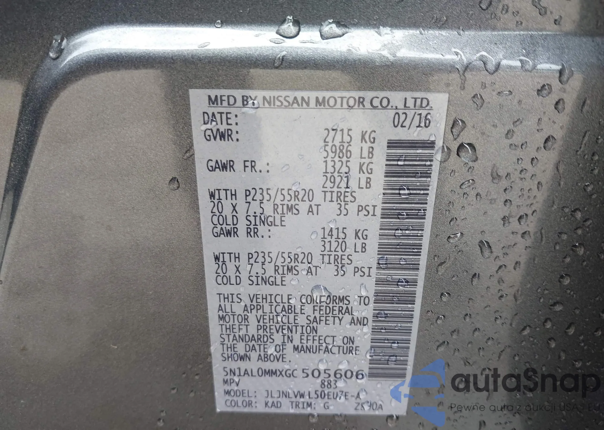 • VIN 5N1AL0MMXGC505606
