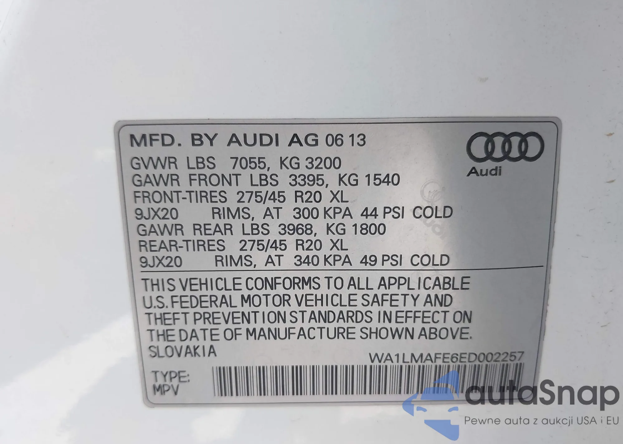 • VIN WA1LMAFE6ED002257