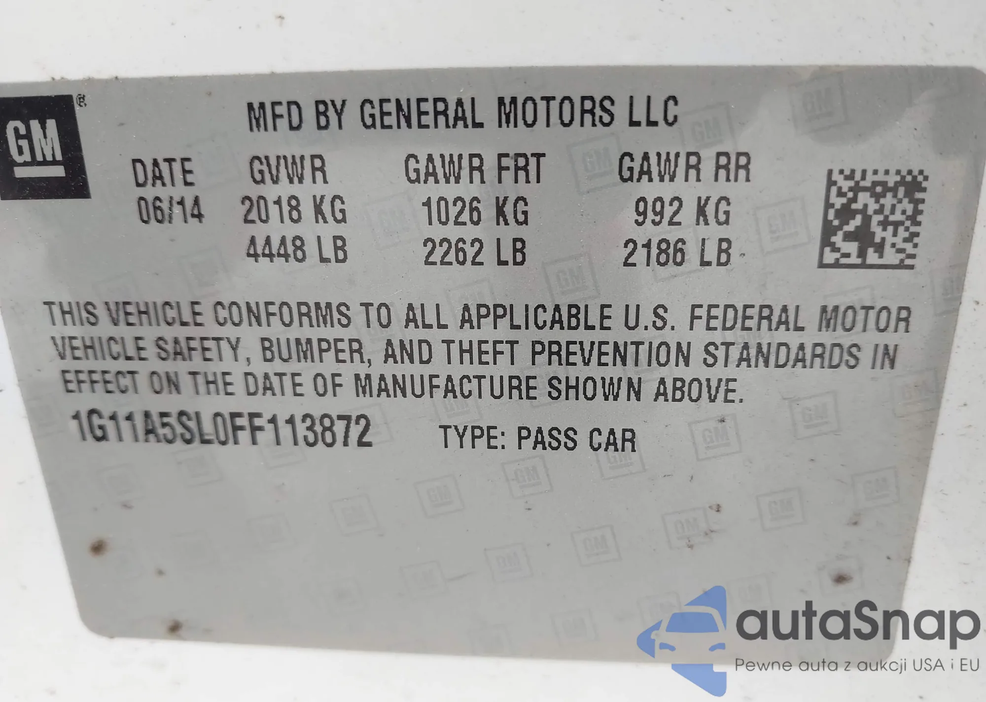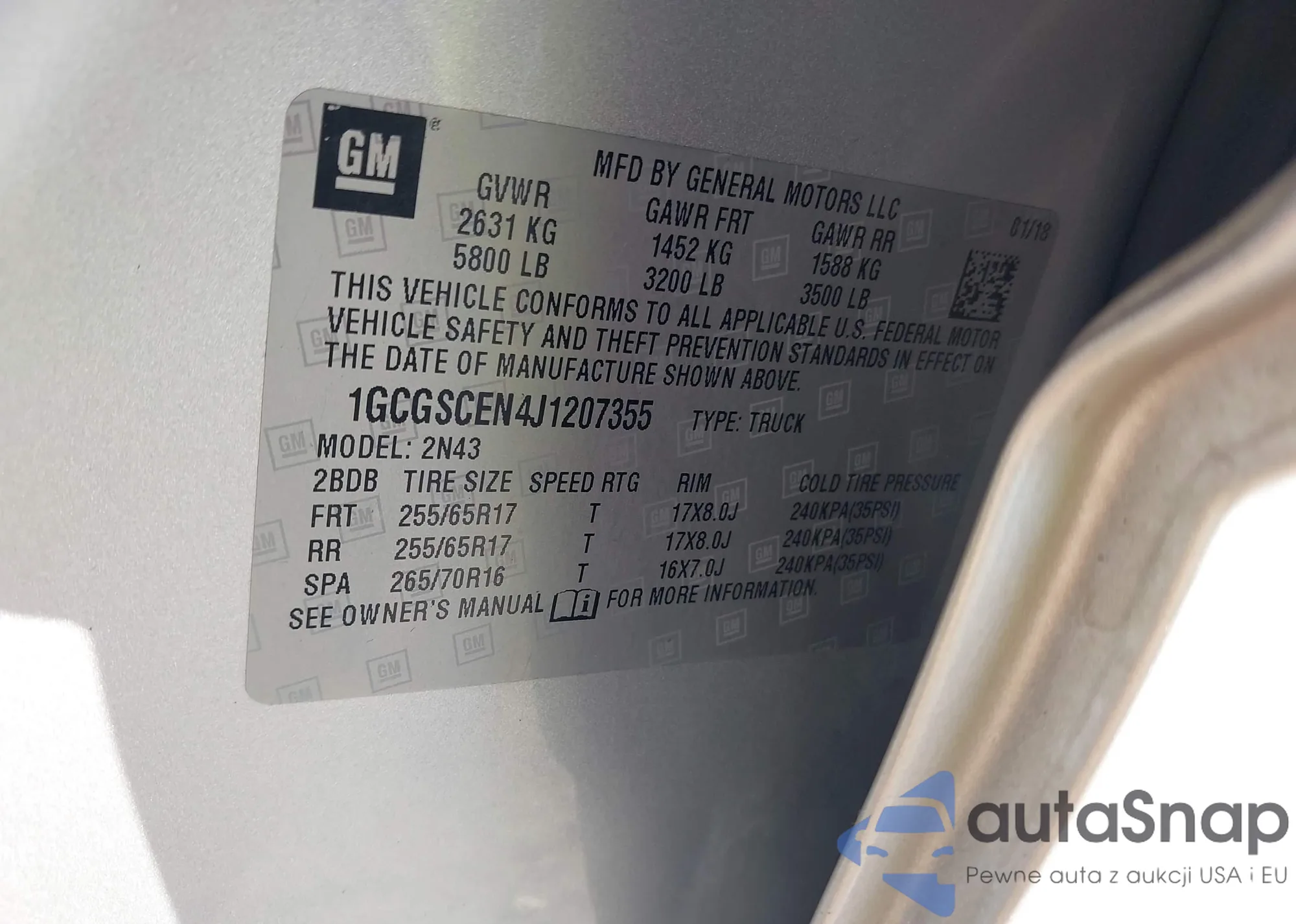 LOT: 43188065 VIN: 1GCGSCEN4J1207355