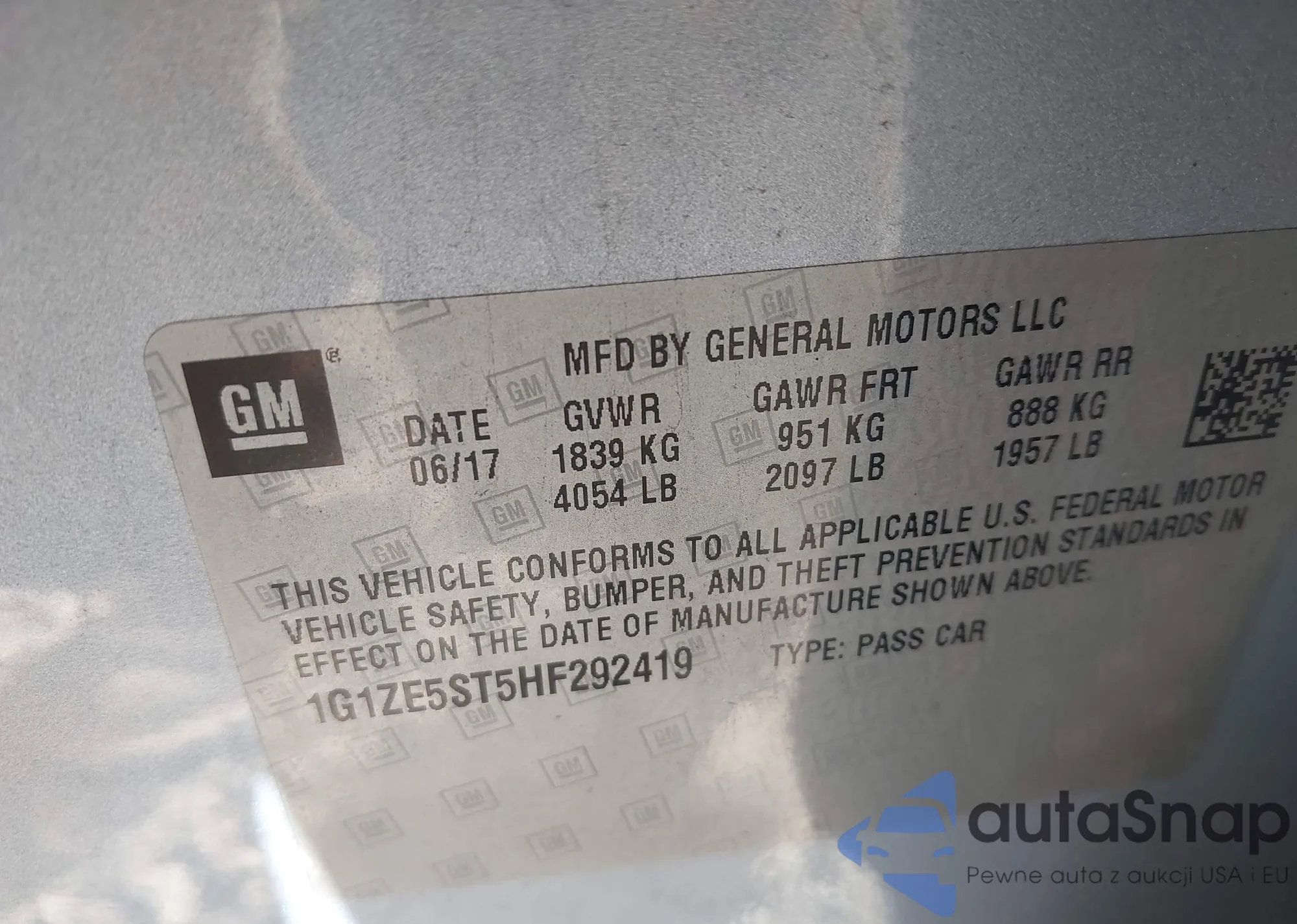 • VIN 1G1ZE5ST5HF292419