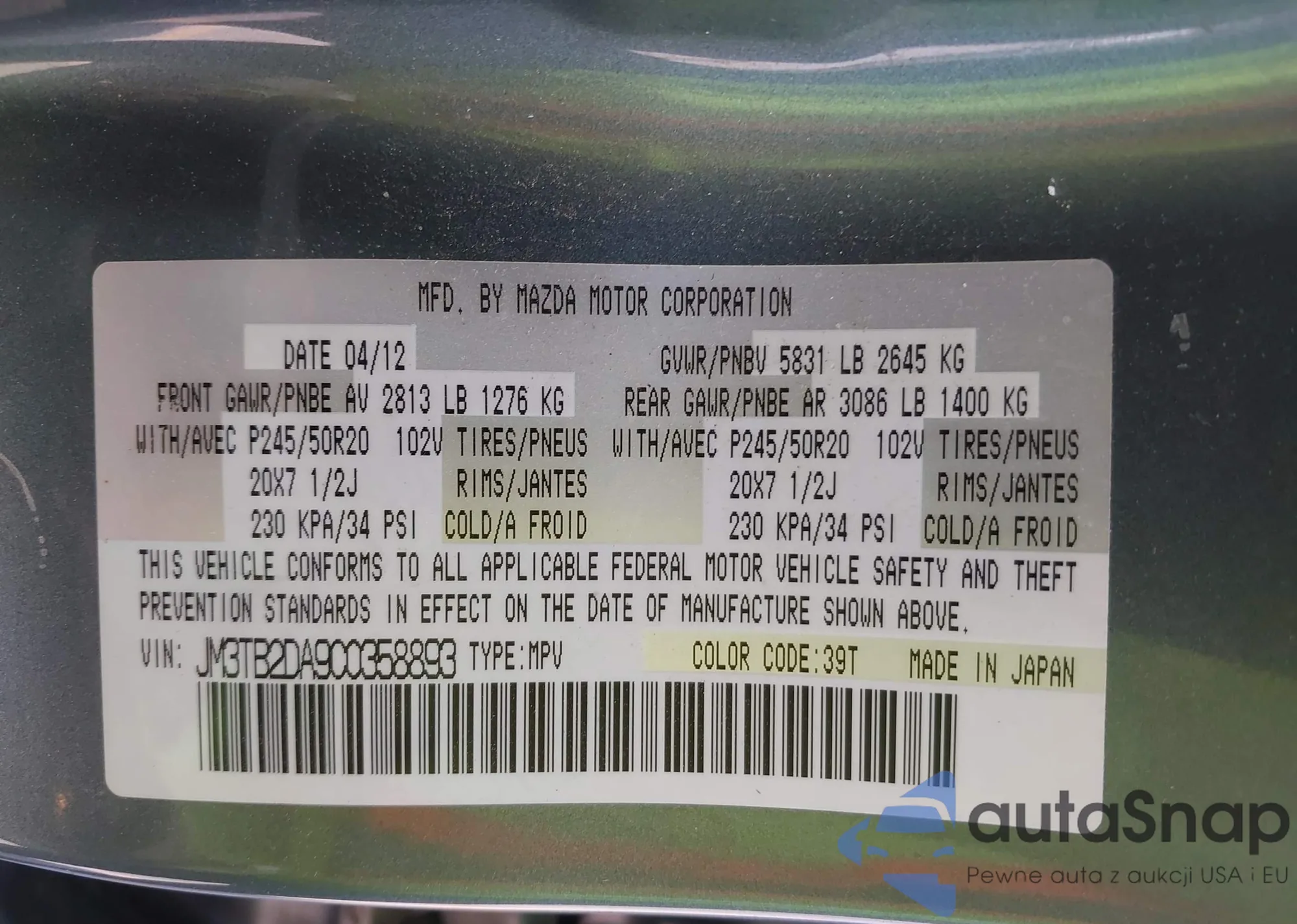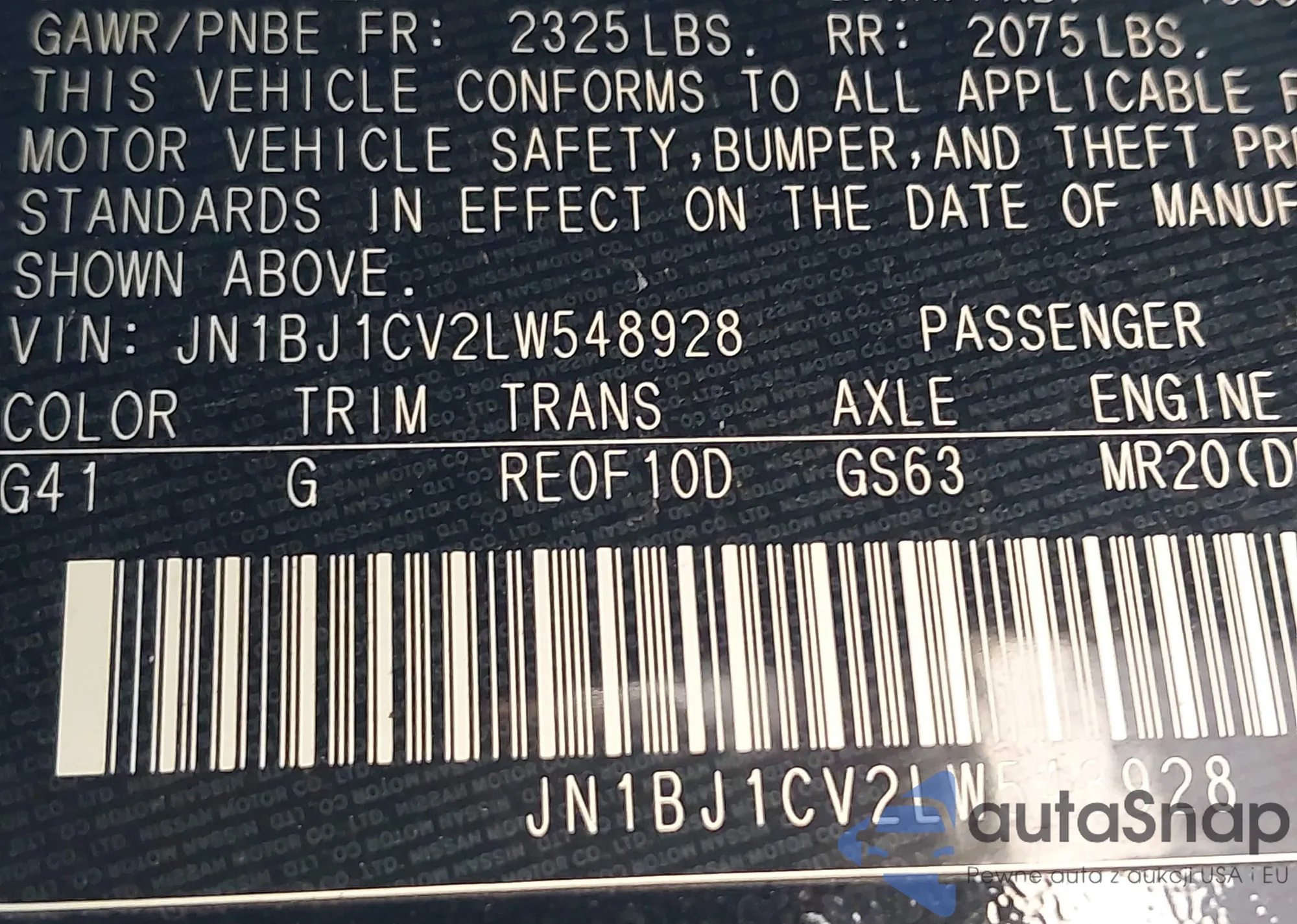 • VIN 1HGCY2F77SA030472