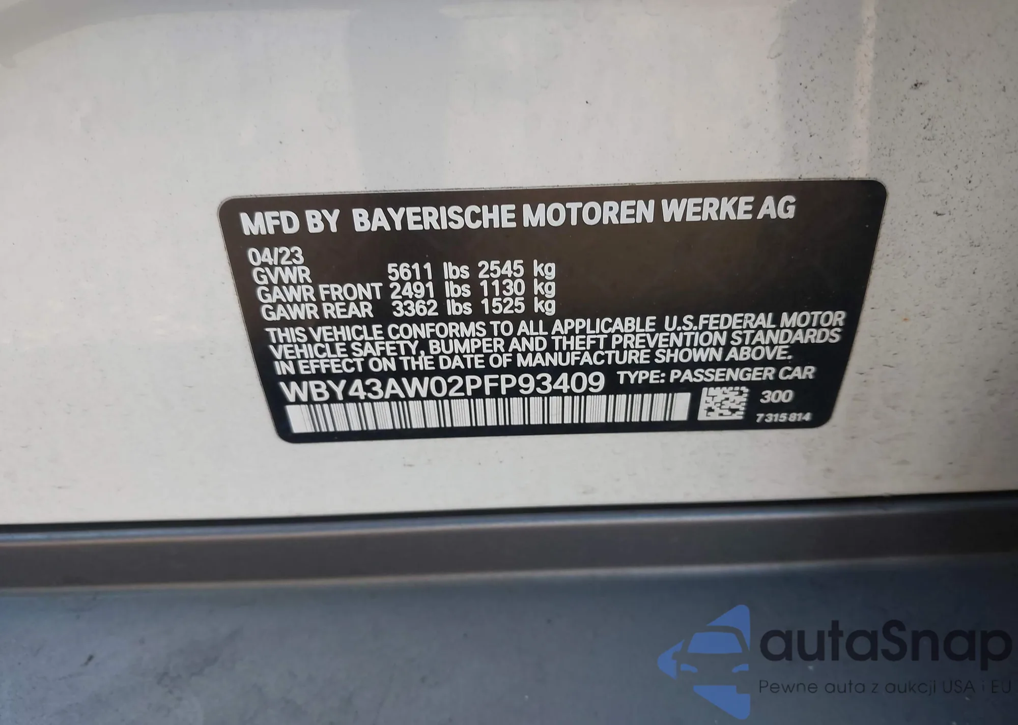 LOT: 43204686 VIN: WBY43AW02PFP93409
