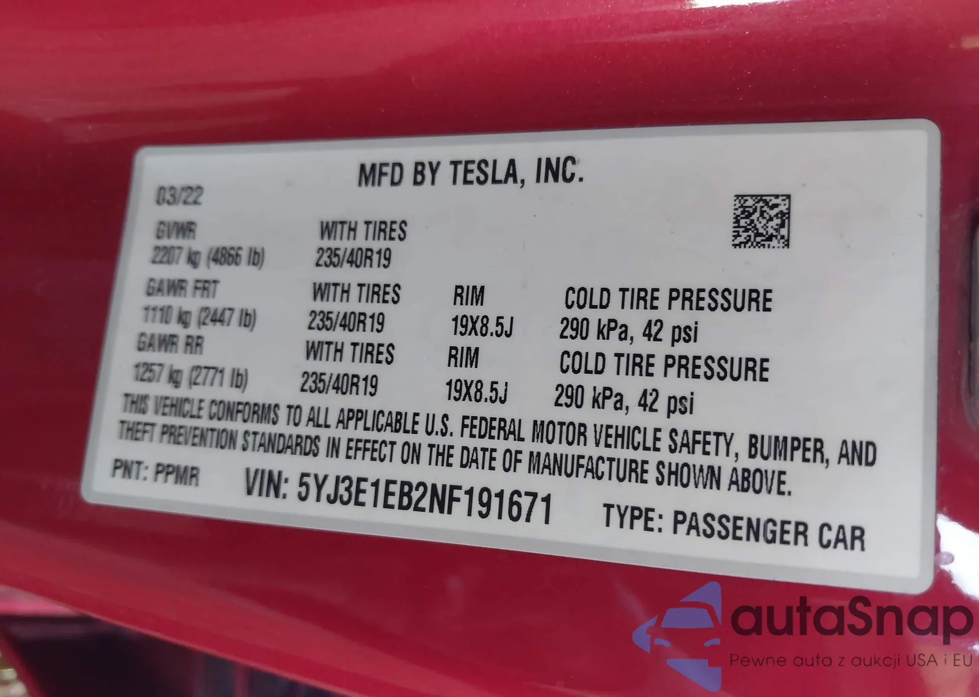 • VIN 5YJ3E1EB2NF191671
