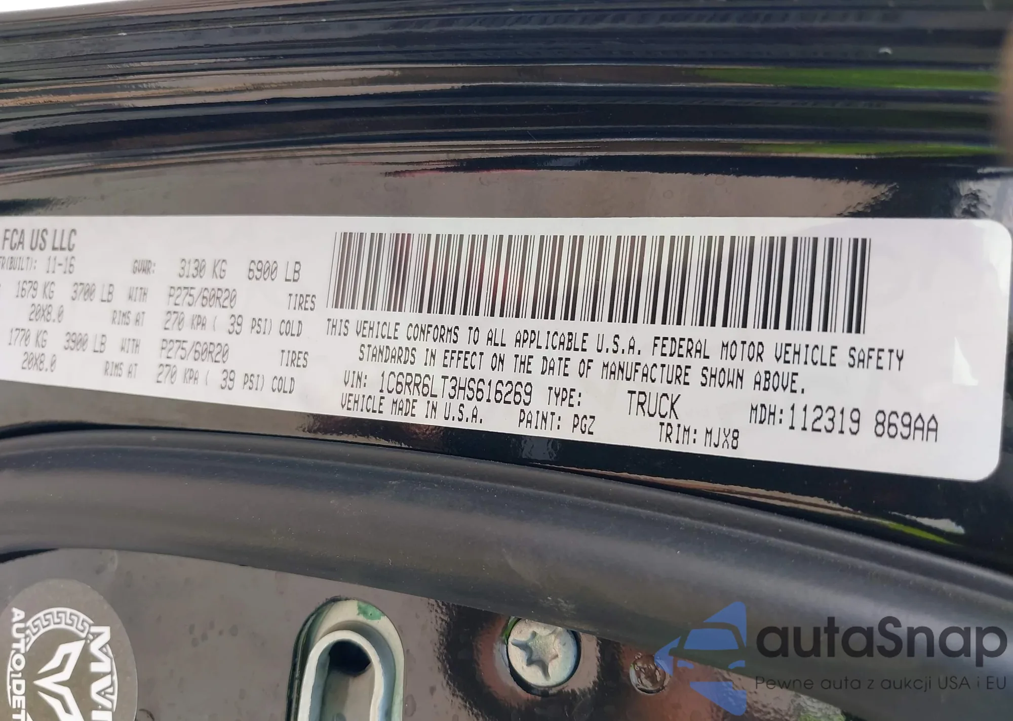 • VIN 1C6RR6LT3HS616269