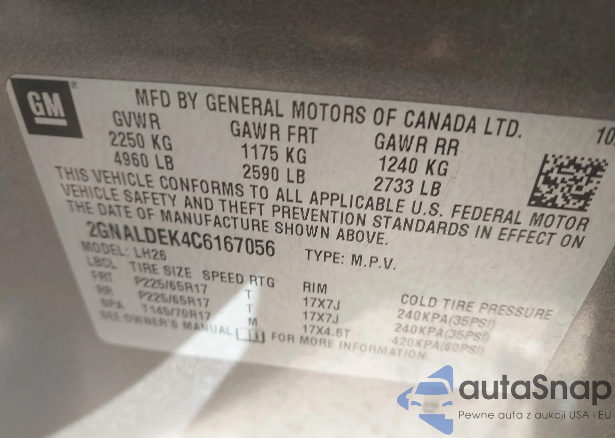 • VIN 2GNALDEK4C6167056