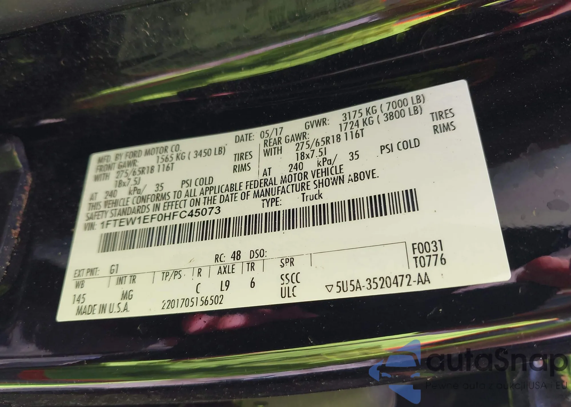 LOT: 42454466 VIN: 1FTEW1EF0HFC45073