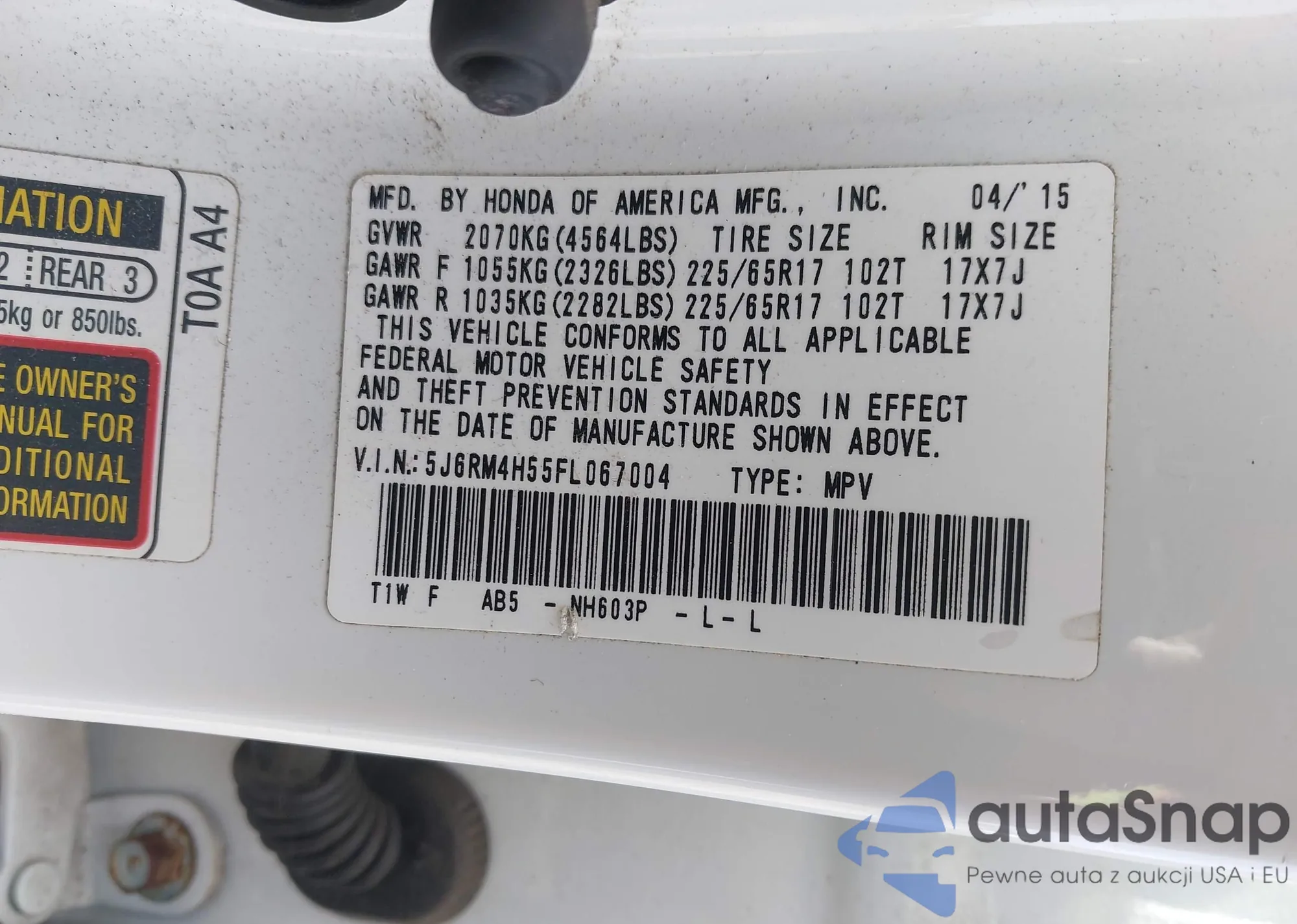 • VIN 5J6RM4H55FL067004