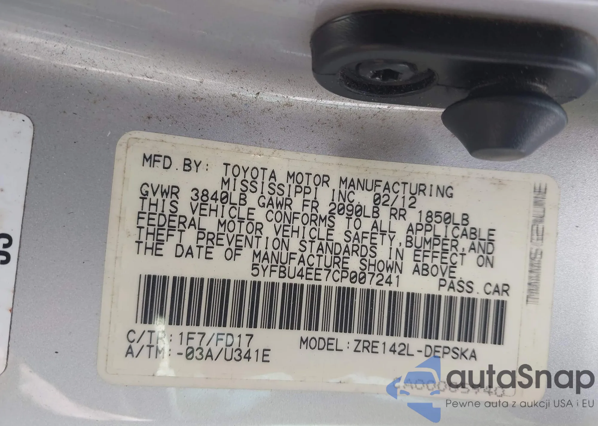 • VIN 5YFBU4EE7CP007241