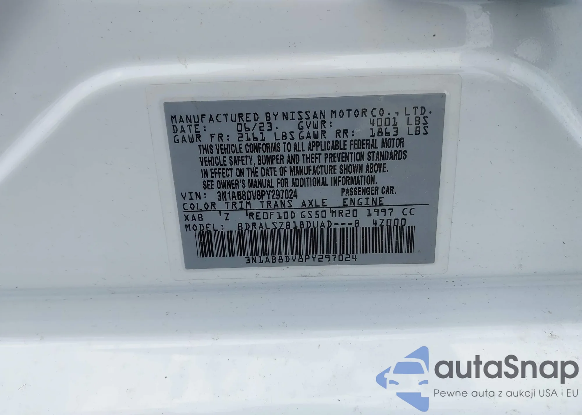 • VIN 3N1AB8DV8PY297024