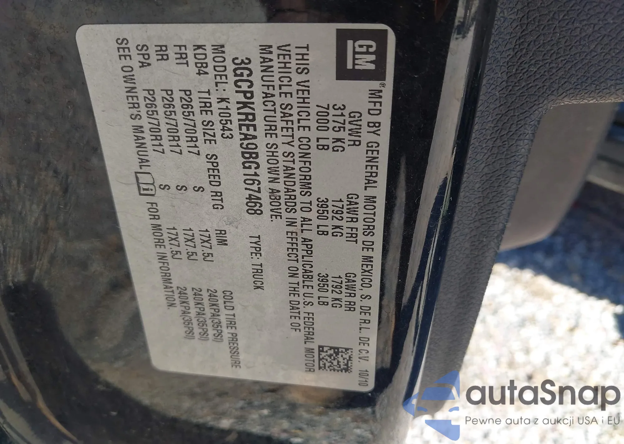 • VIN 3GCPKREA9BG167468