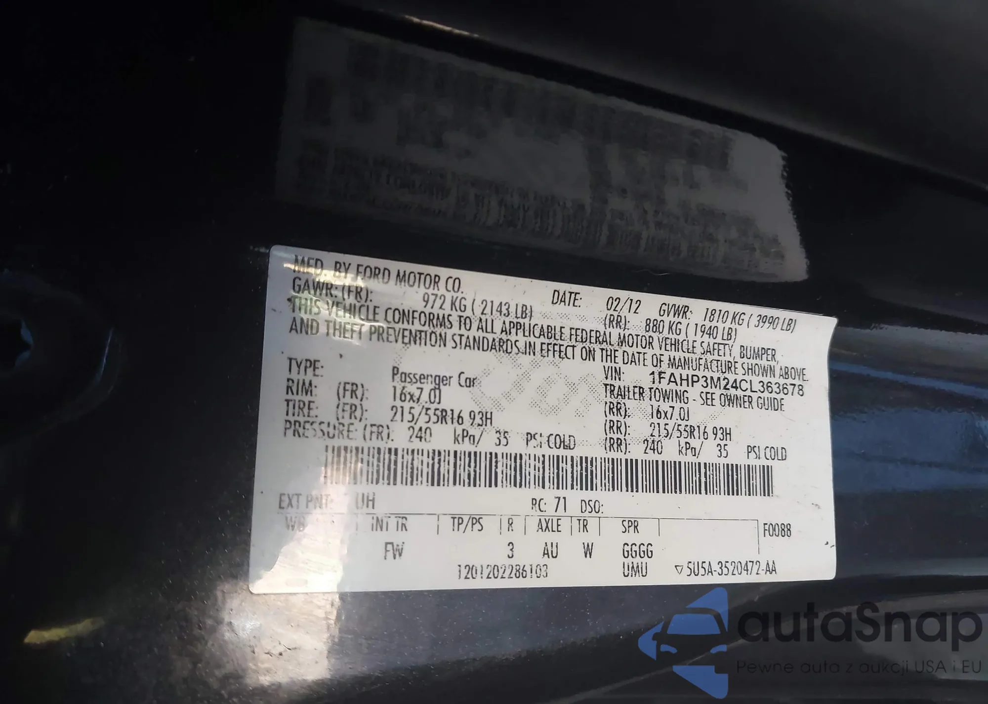 • VIN 1FAHP3M24CL363678