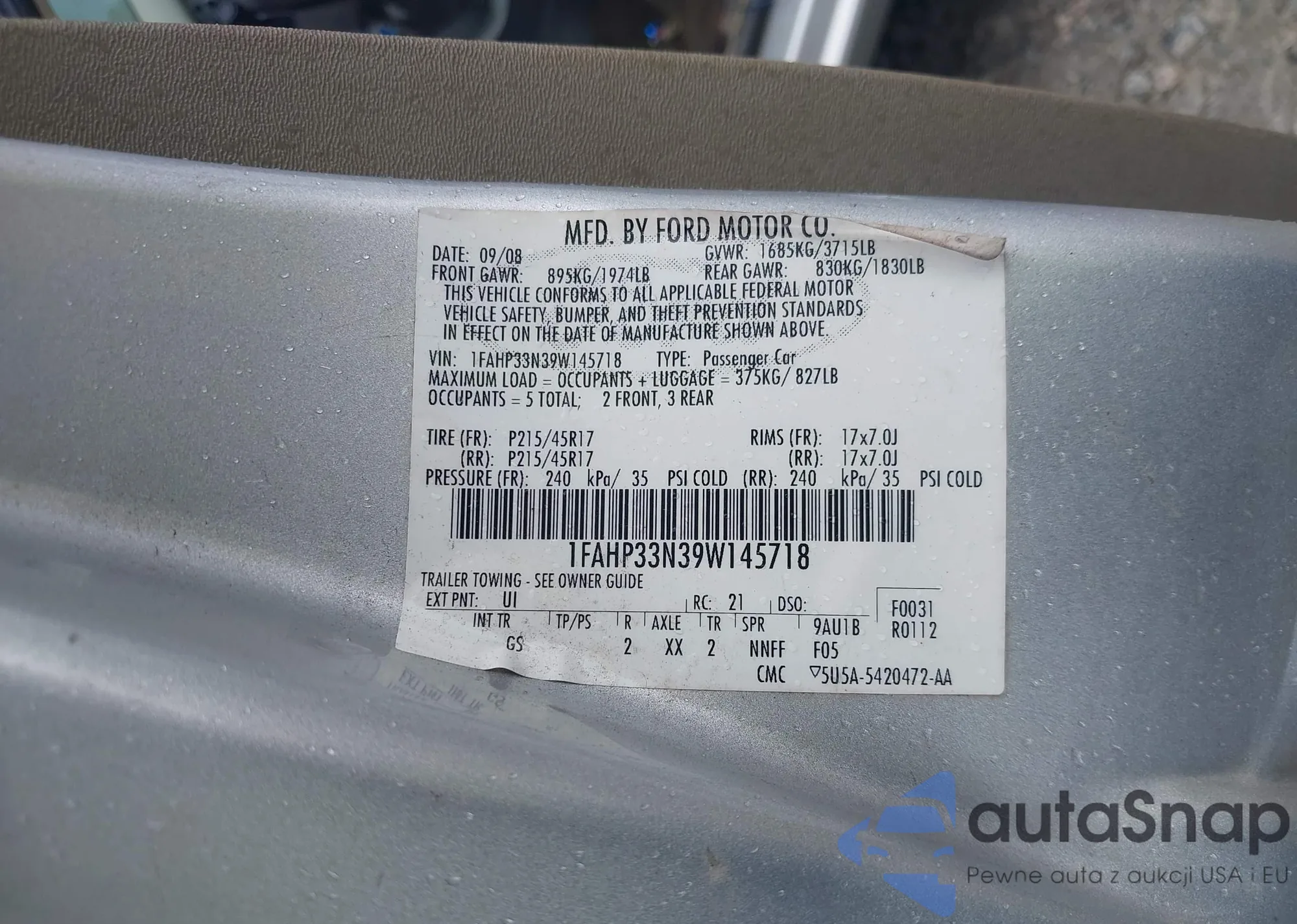 LOT: 43375409 VIN: 1FAHP33N39W145718