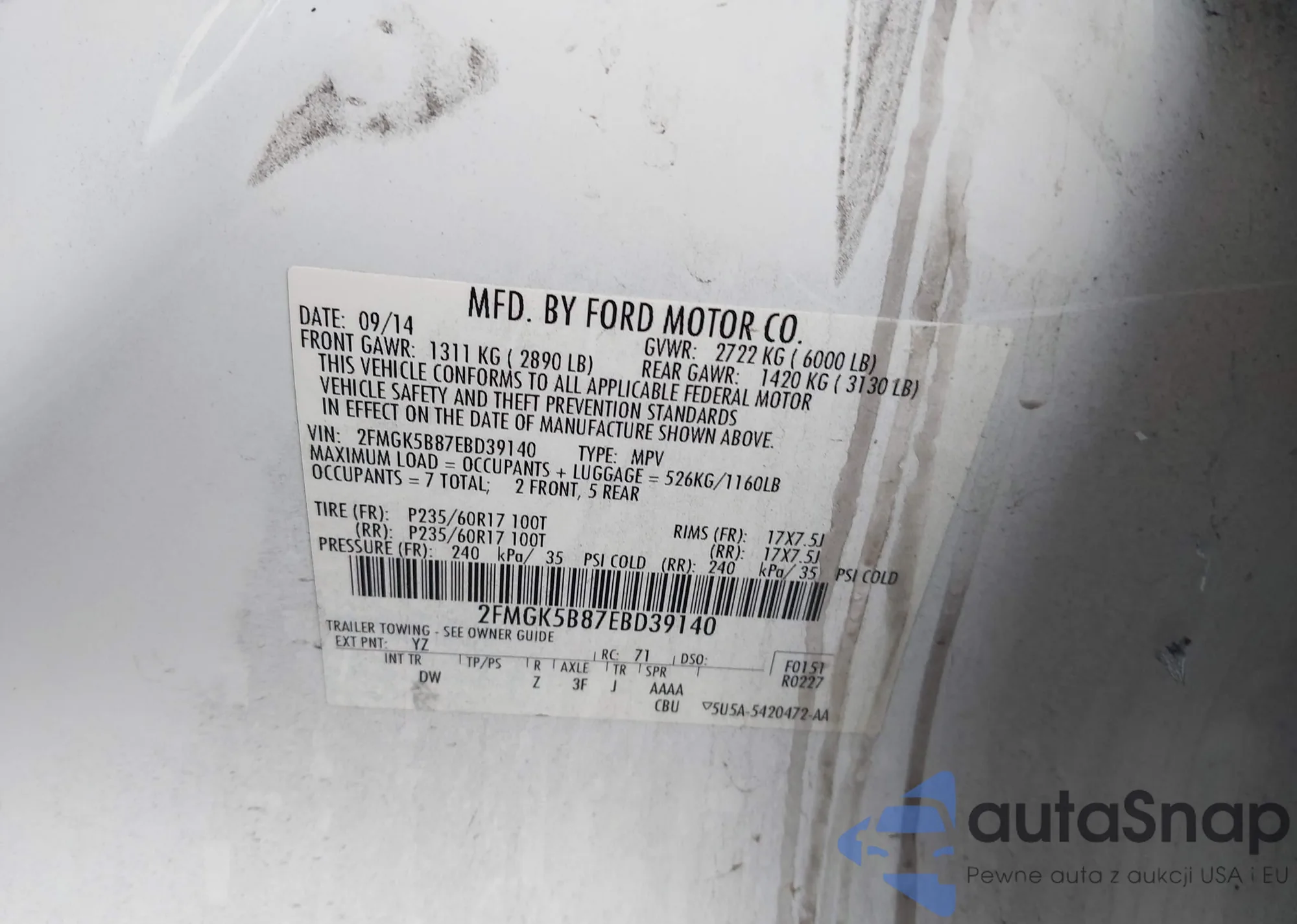 • VIN 2FMGK5B87EBD39140