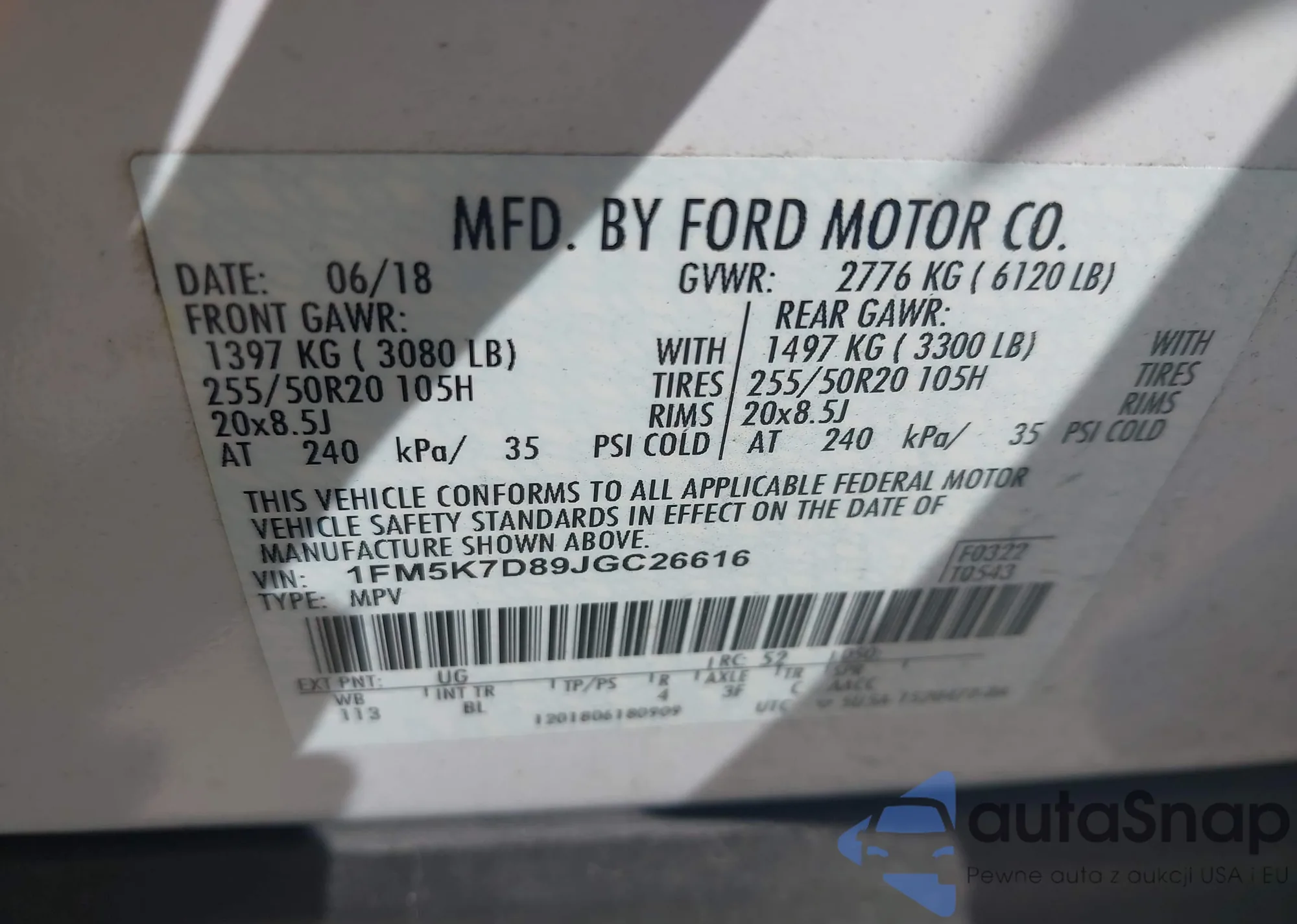 • VIN 1FM5K7D89JGC26616
