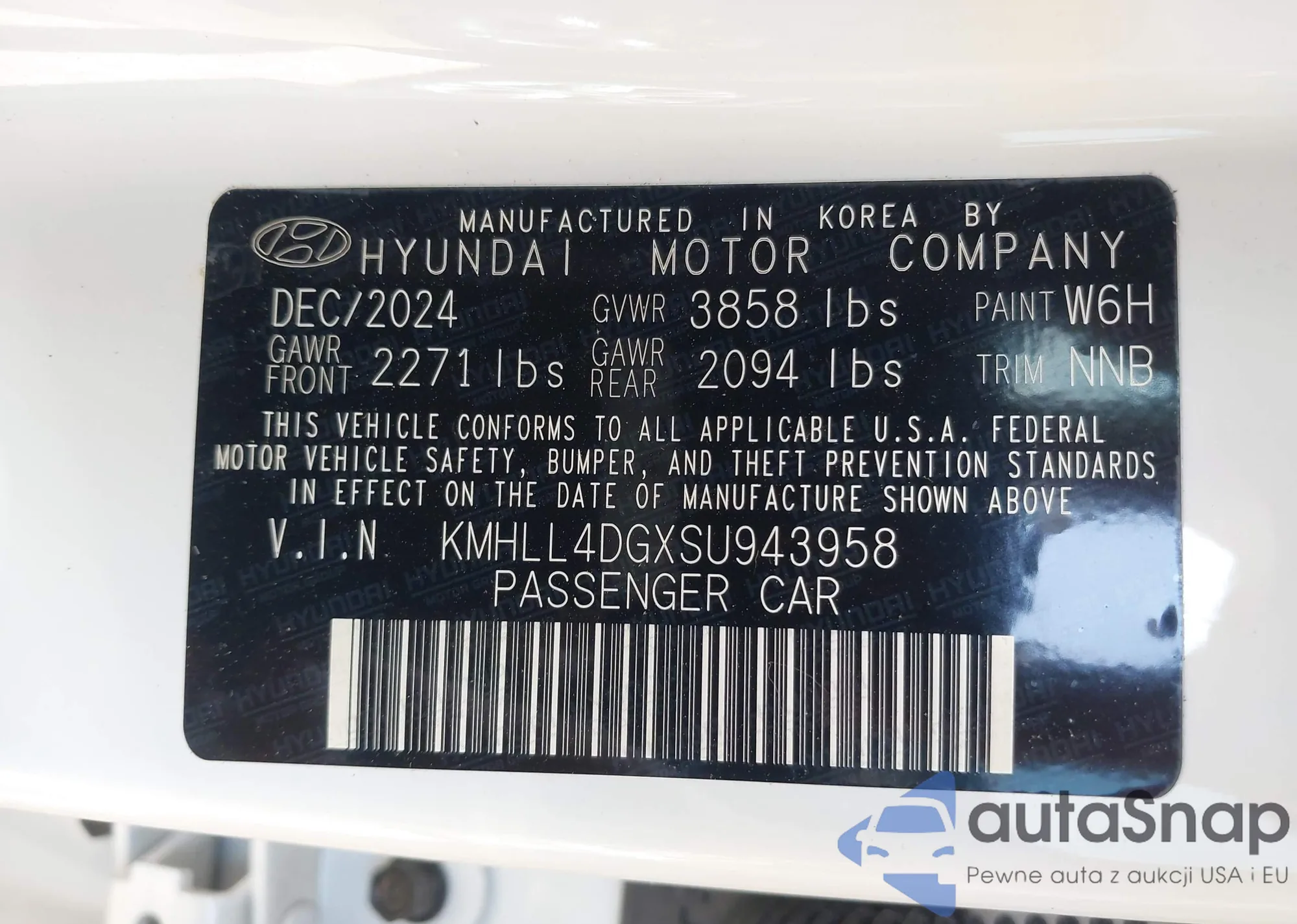 • VIN KMHLL4DGXSU943958