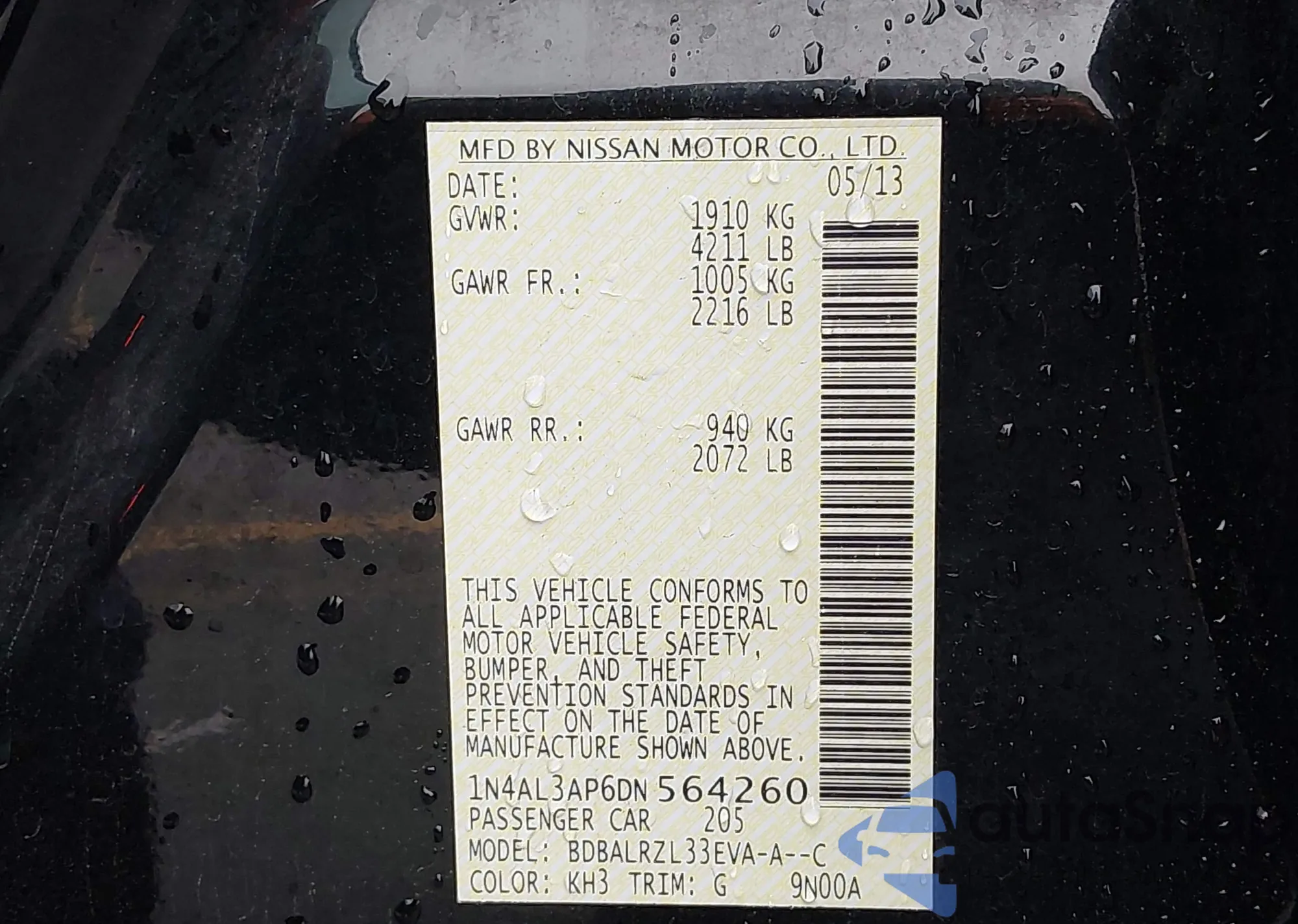 LOT: 43462804 VIN: JTNBK3EK3A3049168