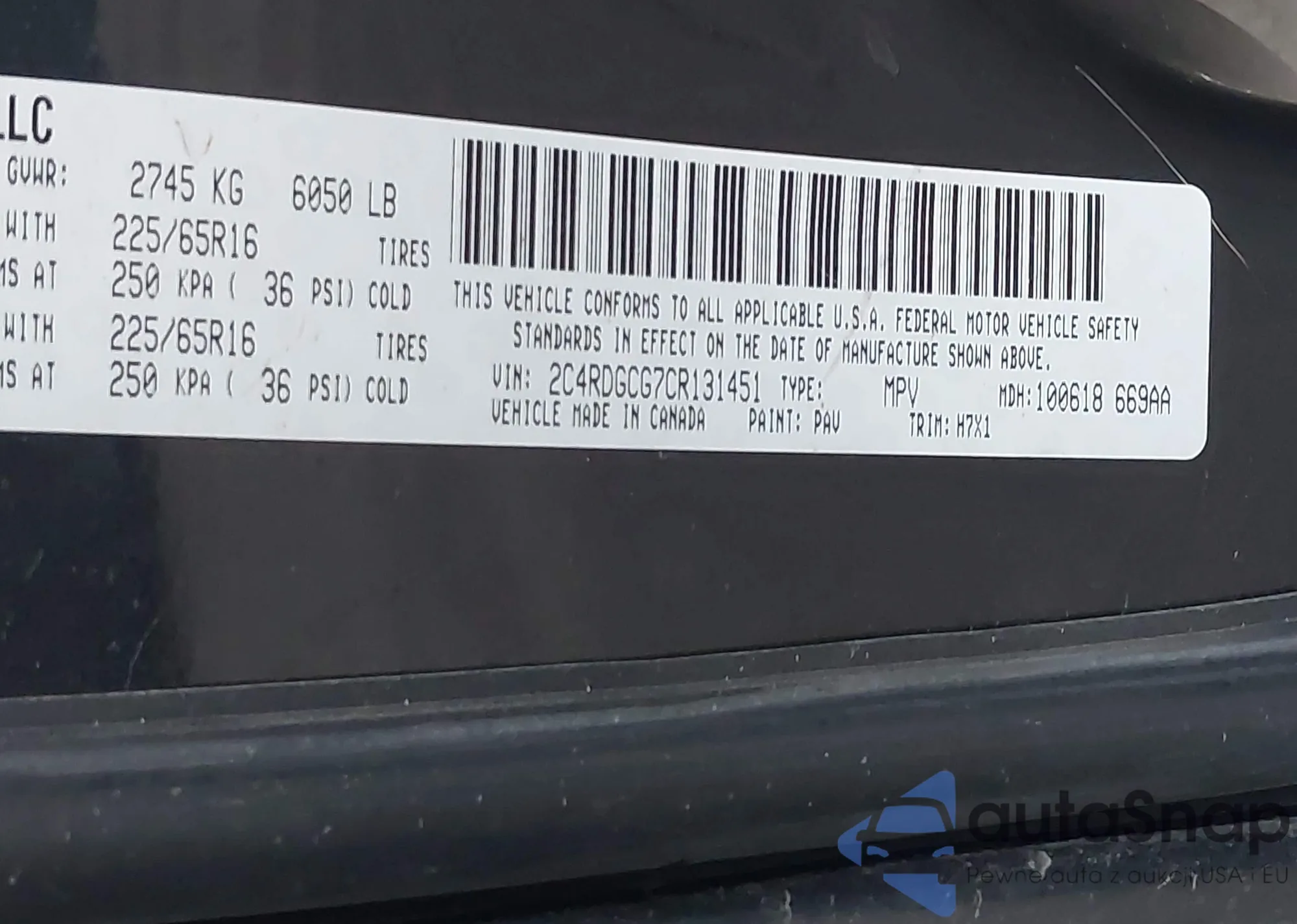 • VIN 2C4RDGCG7CR131451