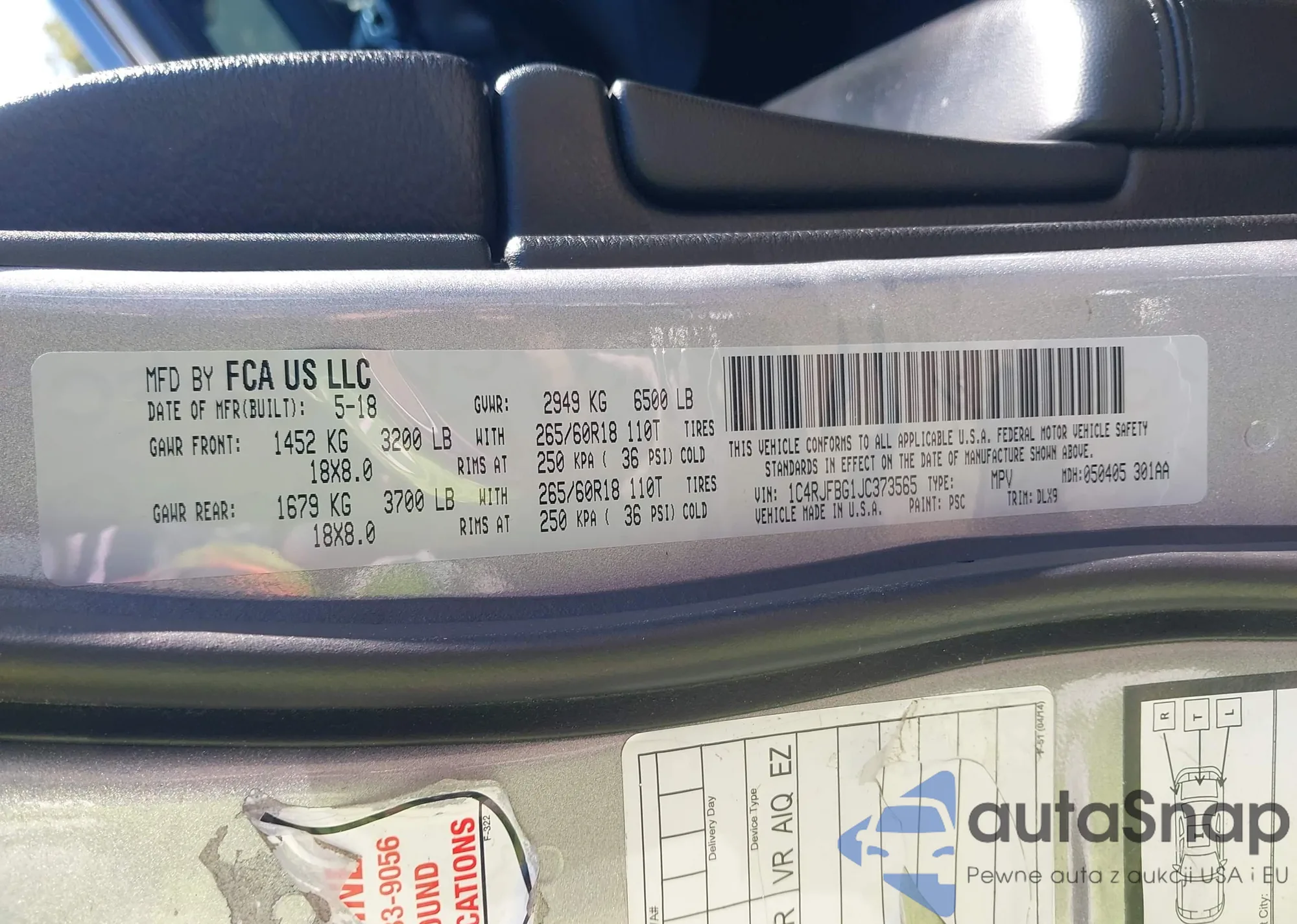 • VIN 1C4RJFBG1JC373565