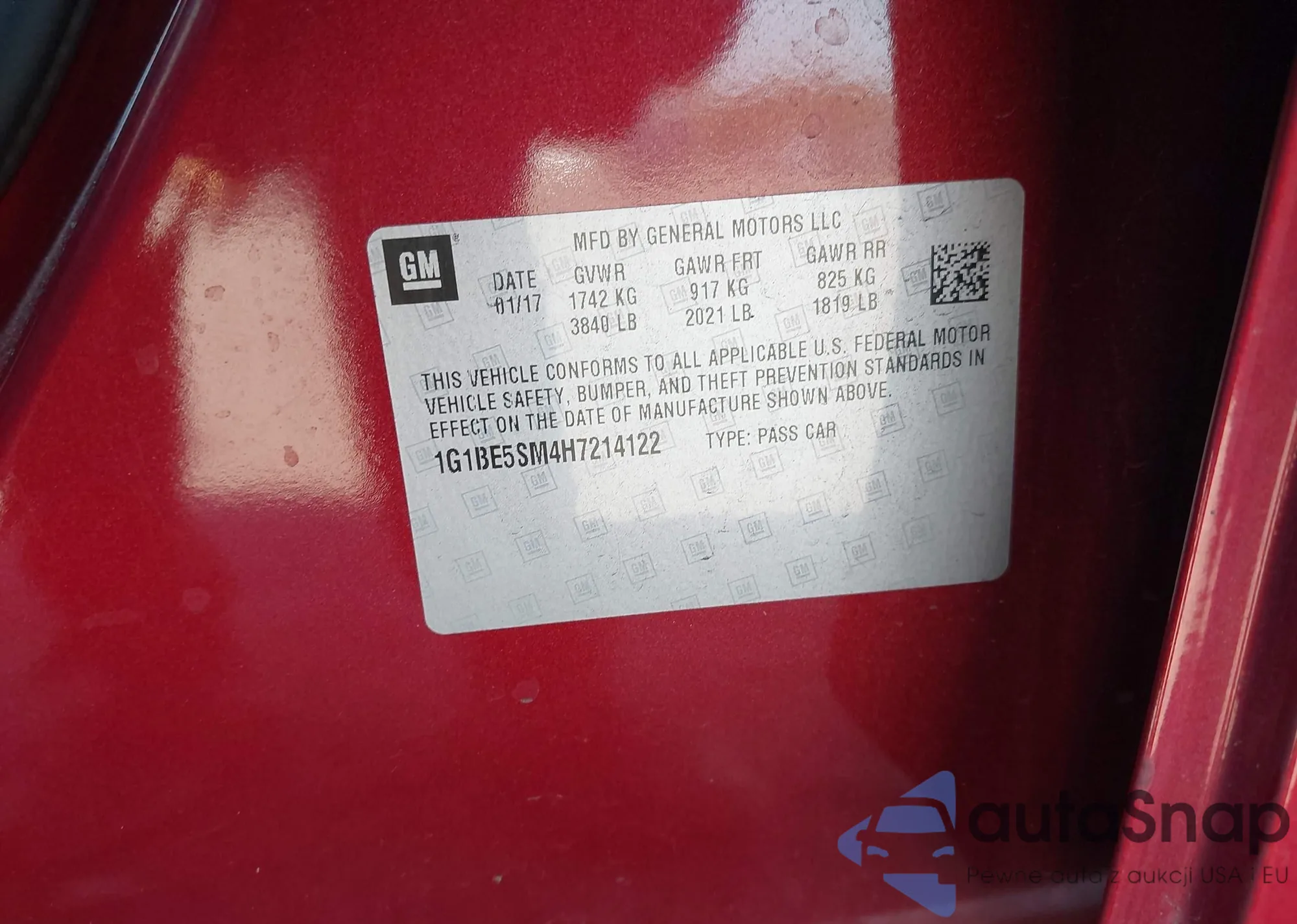 LOT: 43383213 VIN: 1G1BE5SM4H7214122