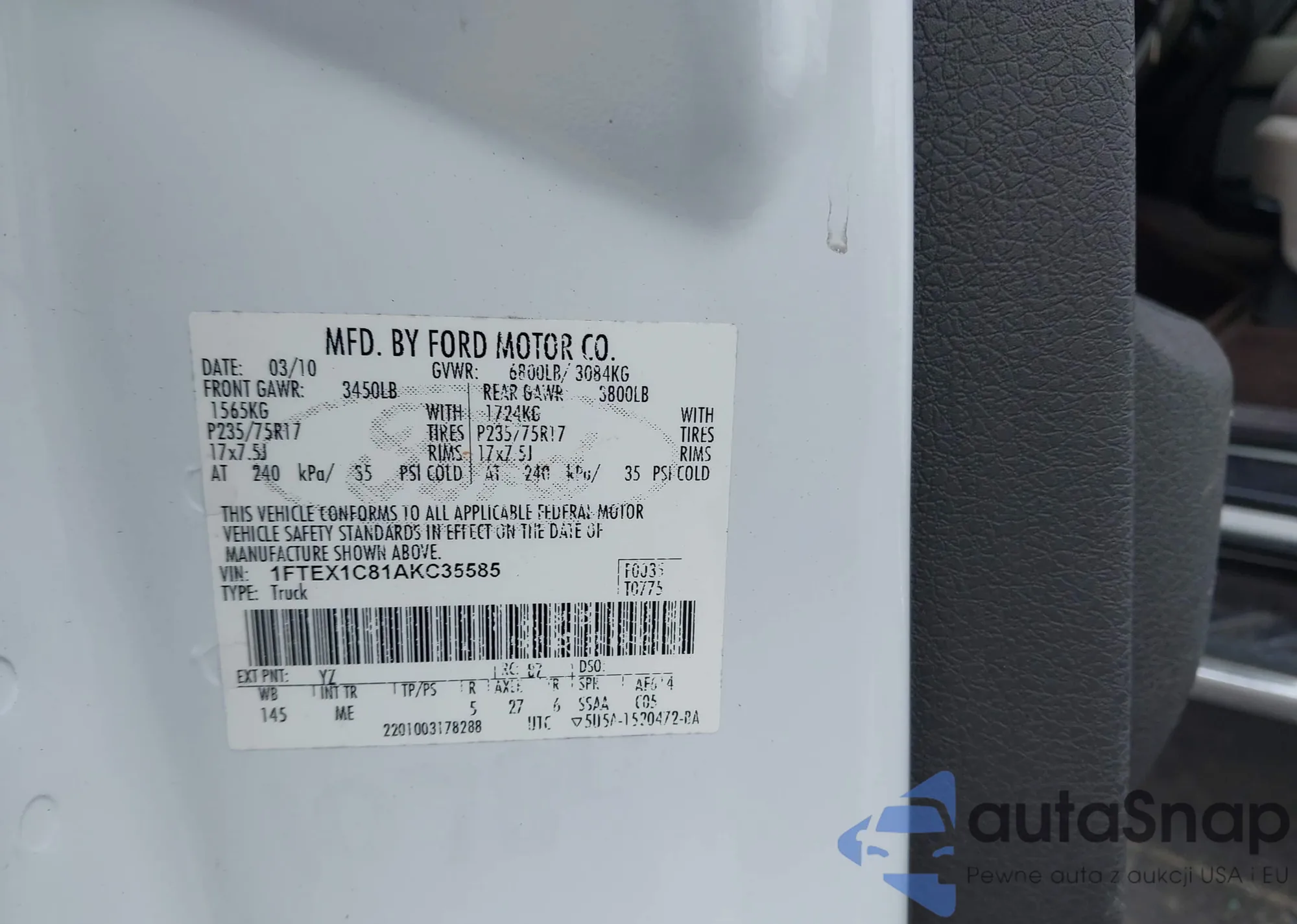 • VIN 1FTEX1C81AKC35585