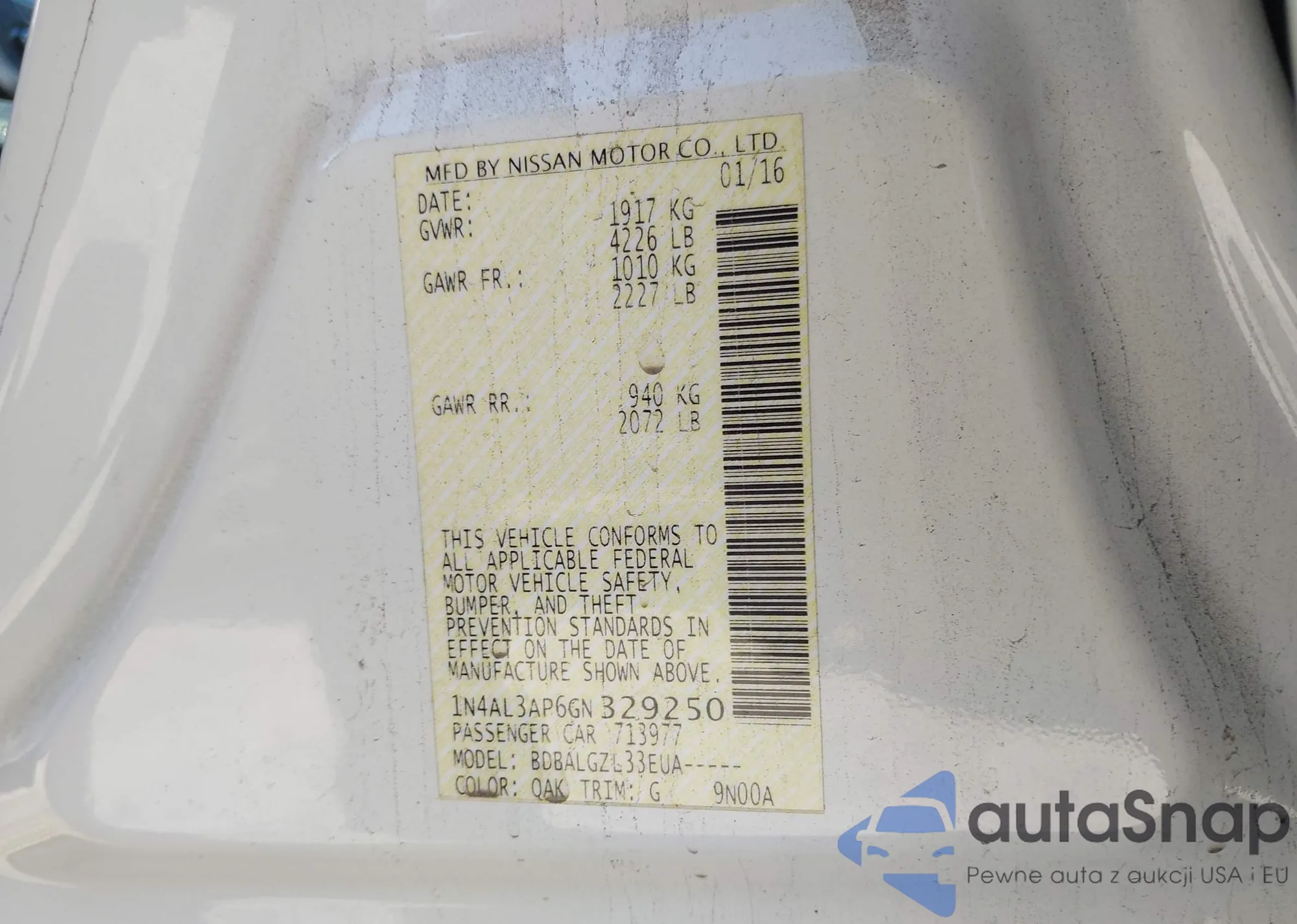 LOT: 43533902 VIN: 1N4AL3AP6GN329250