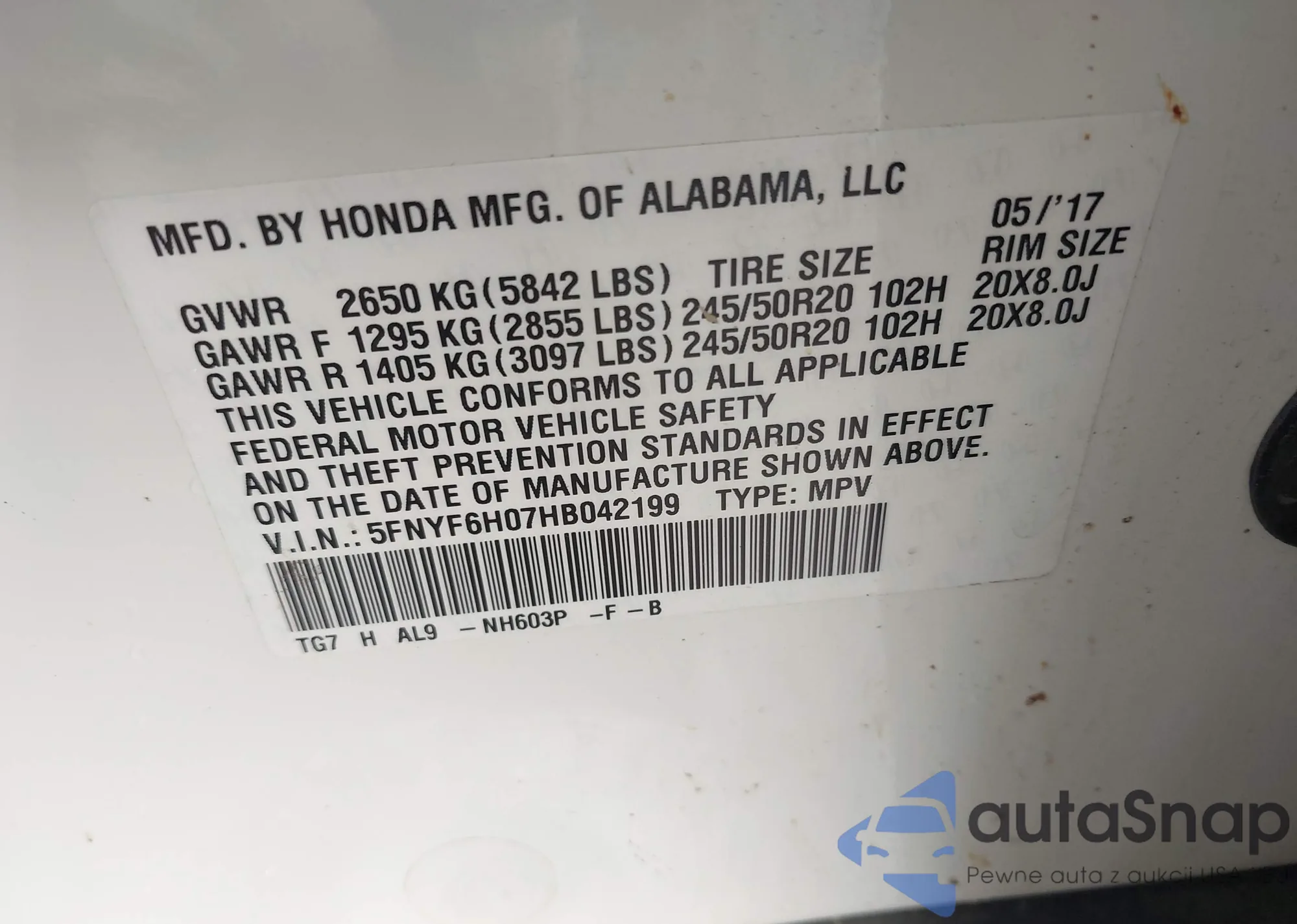 • VIN JHLRE383X7C058931