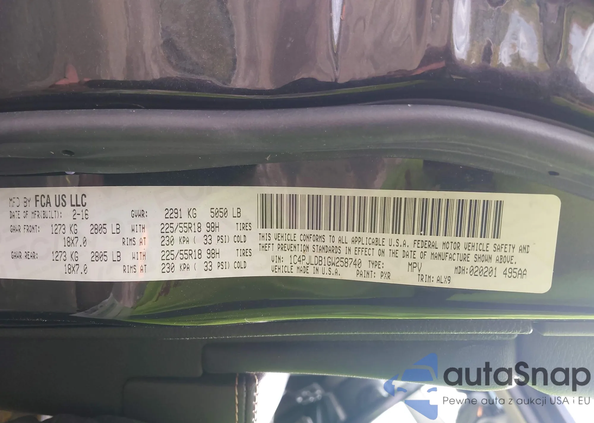 LOT: 43488821 VIN: 1C4PJLDB1GW258740