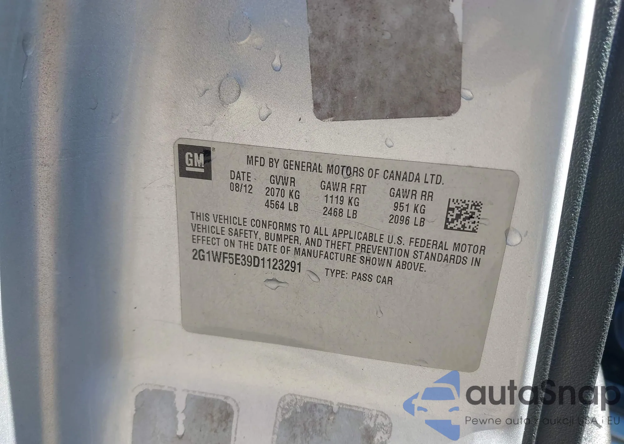LOT: 43489853 VIN: 2G1WF5E39D1123291