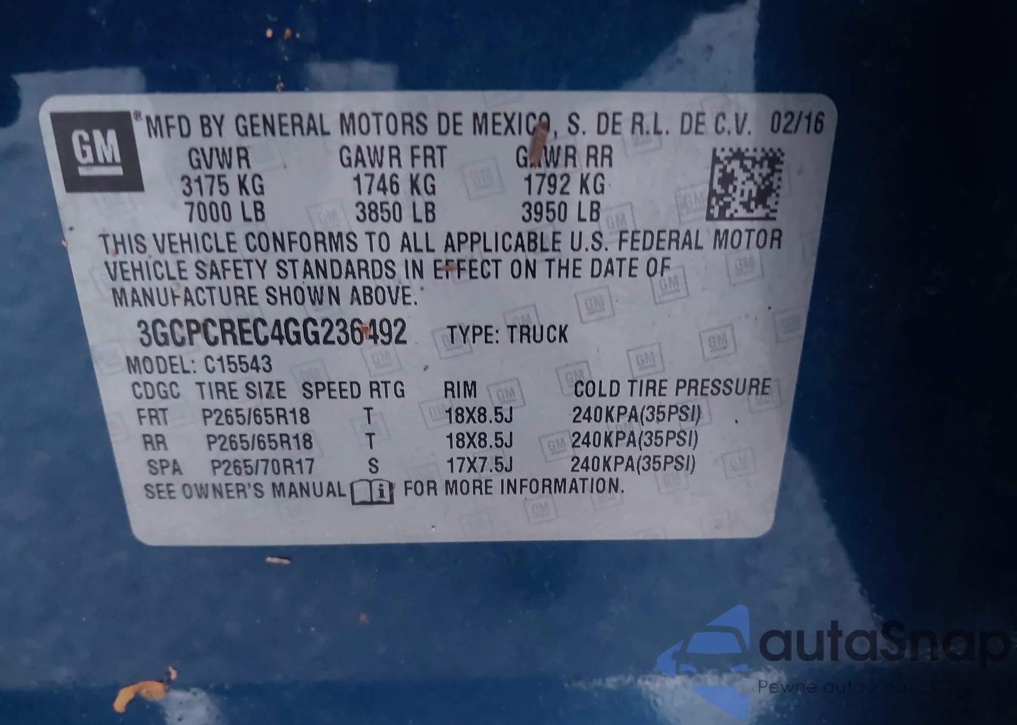 • VIN 3KPFW4DE0SE051465