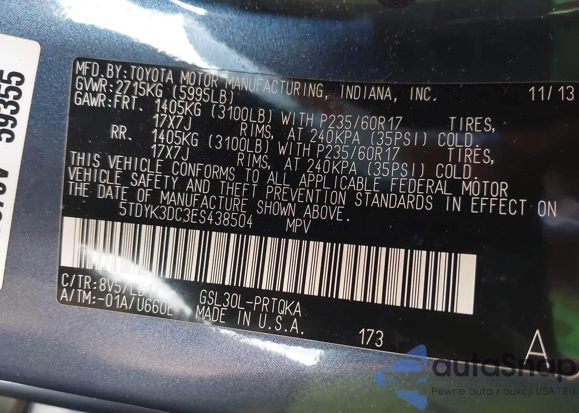 • VIN 5TDYK3DC3ES438504