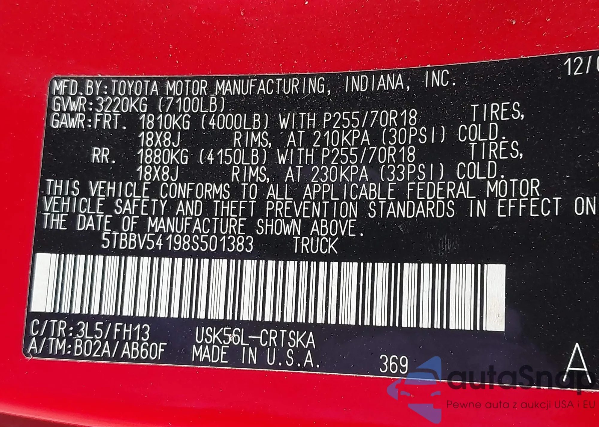LOT: 43109355 VIN: 5TBBV54198S501383