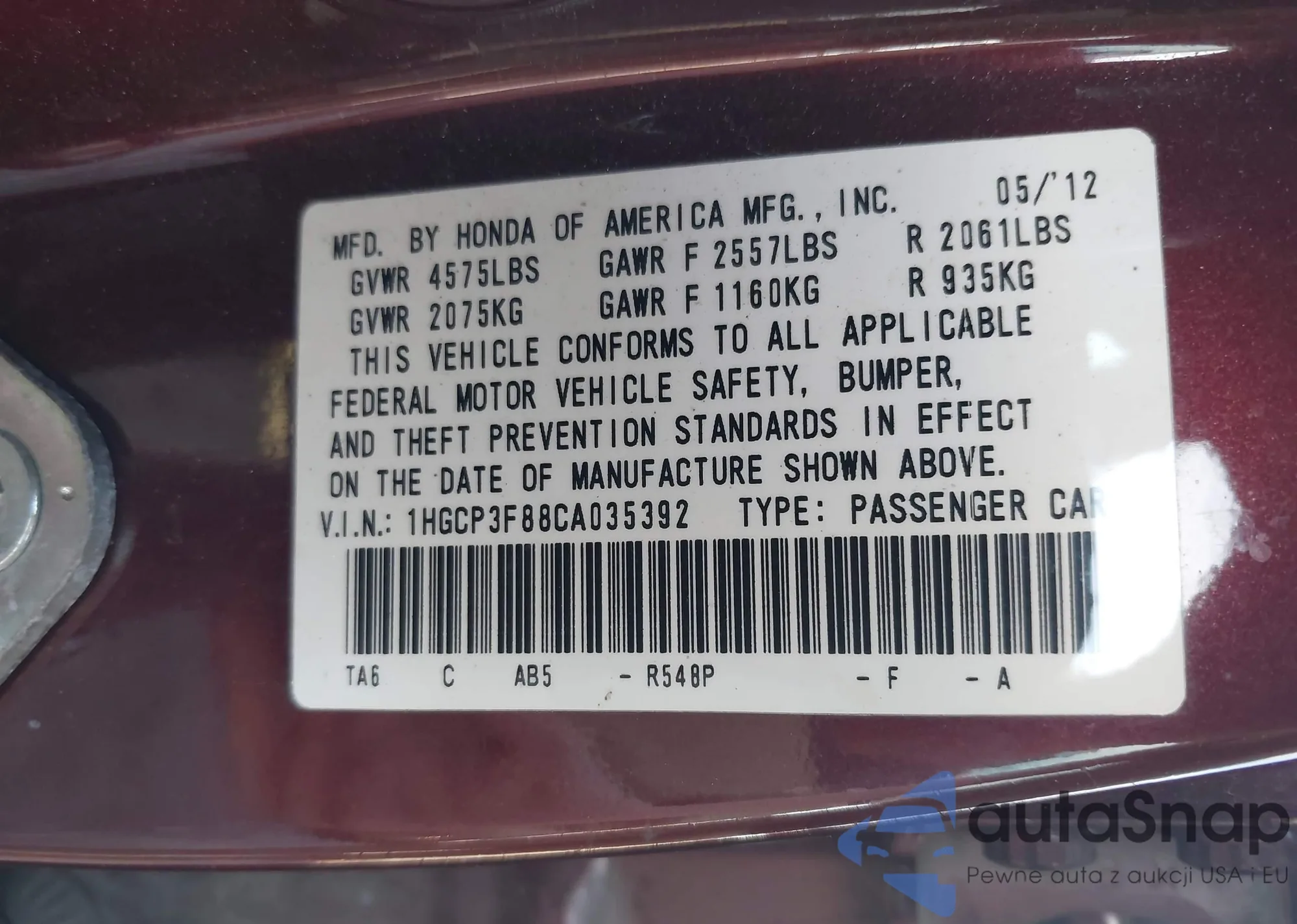 LOT: 43318478 VIN: 1FAHP2FW4BG120180