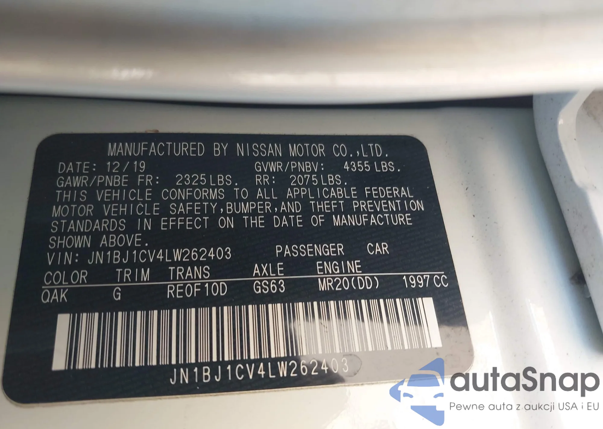 LOT: 43364899 VIN: JN1BJ1CV4LW262403