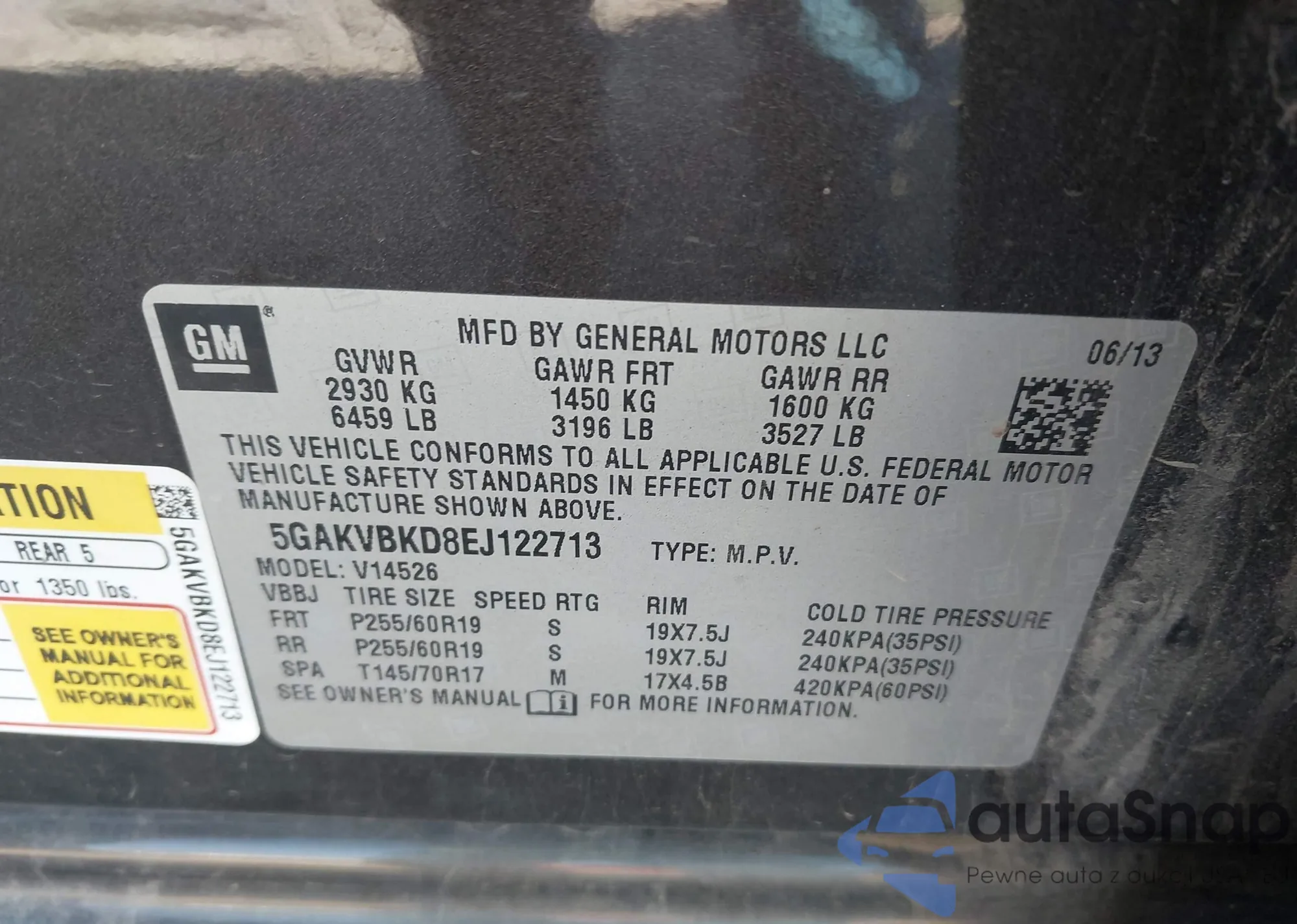 • VIN 5GAKVBKD8EJ122713