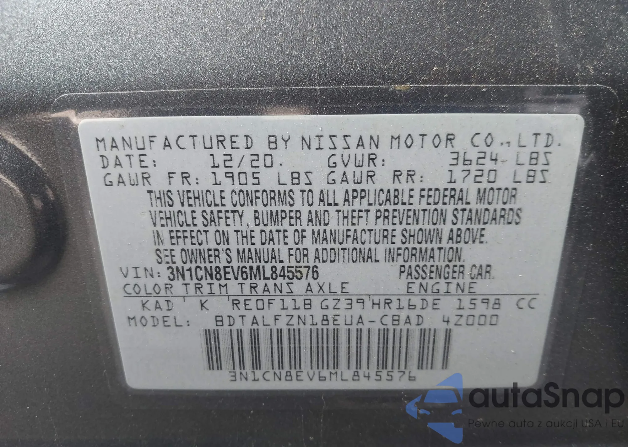 • VIN 3N1CN8EV6ML845576