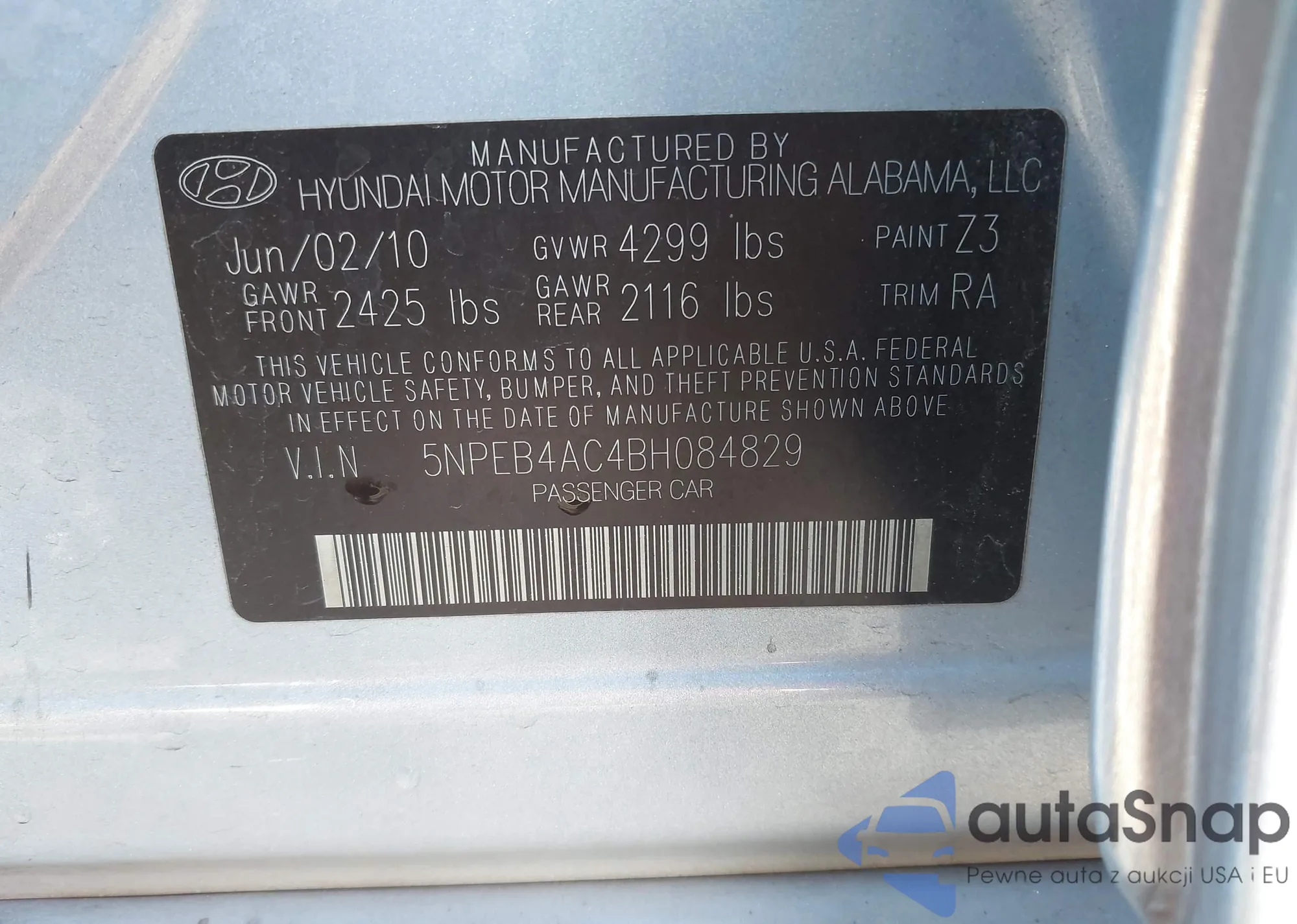 • VIN 5NPEB4AC4BH084829