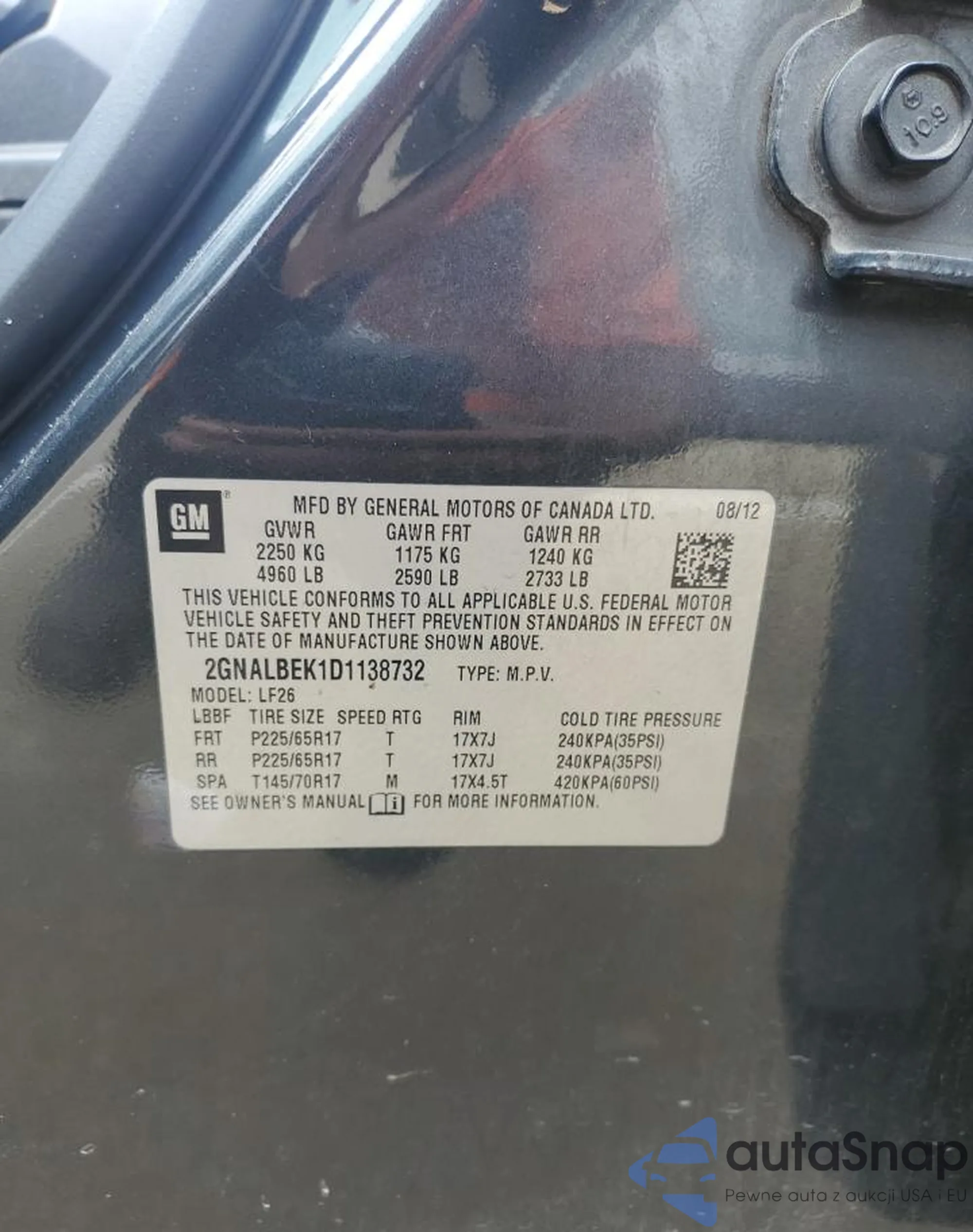 • VIN 2GNALBEK1D1138732