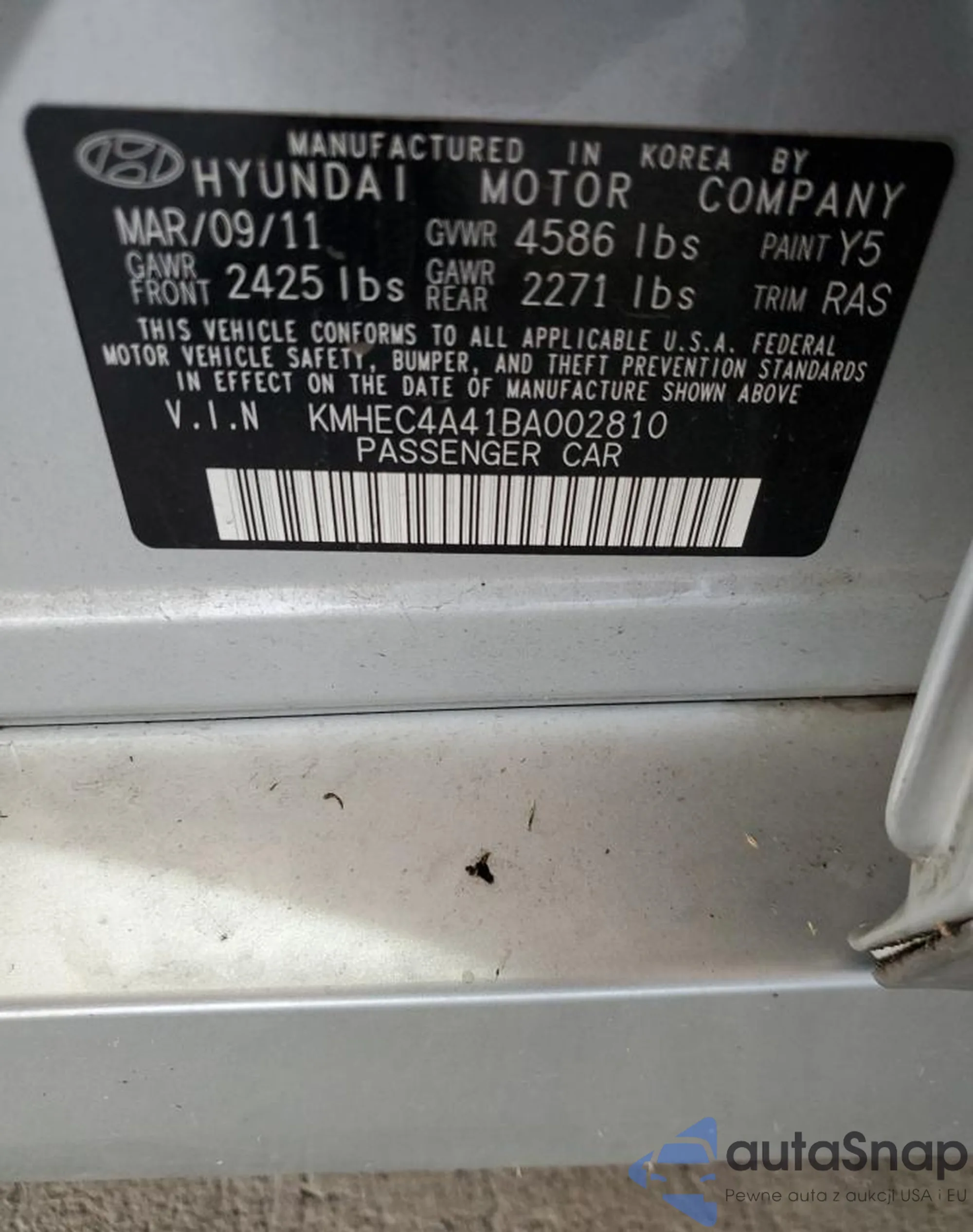 LOT: 86480695 VIN: KMHEC4A41BA002810