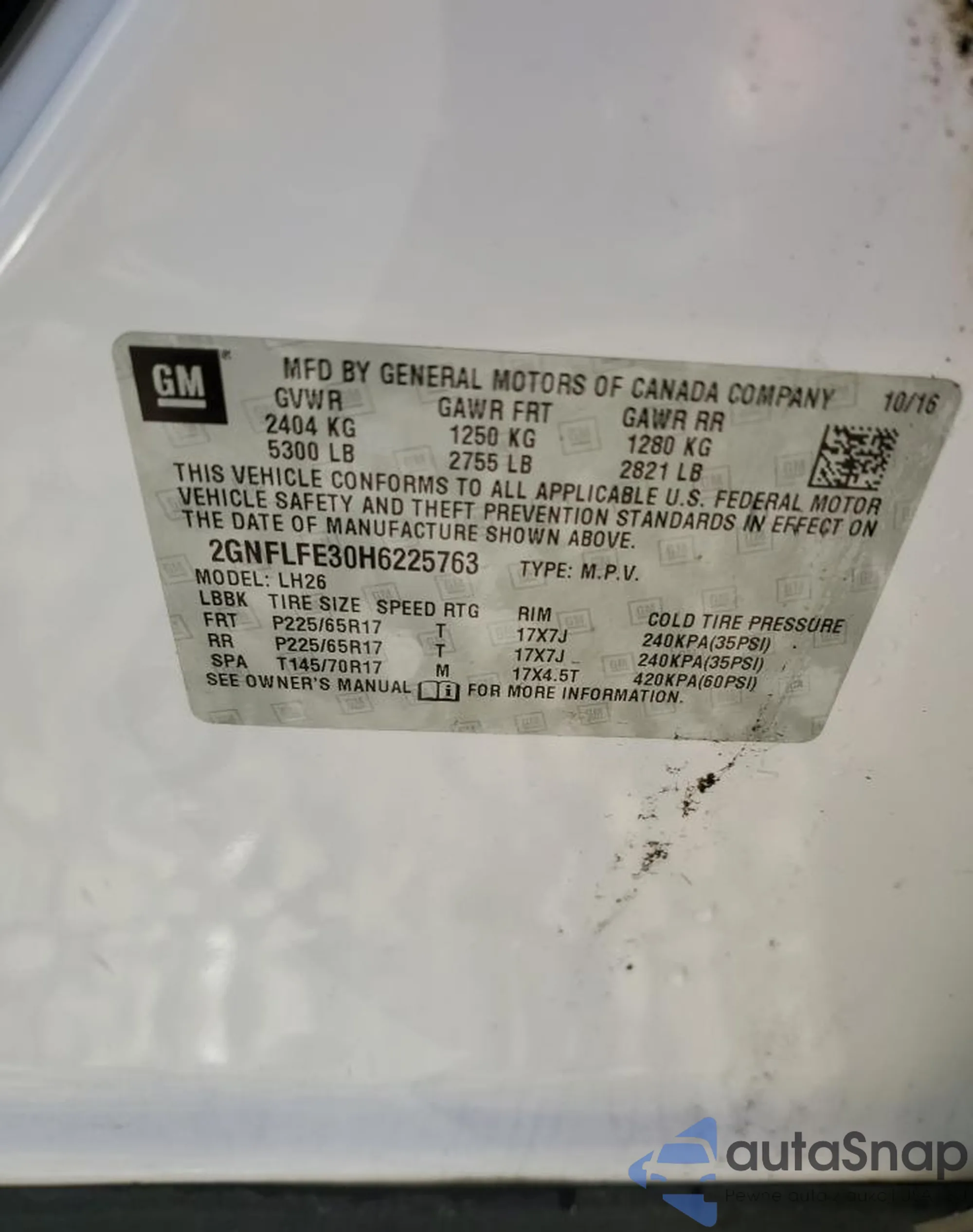 • VIN 2GNFLFE30H6225763