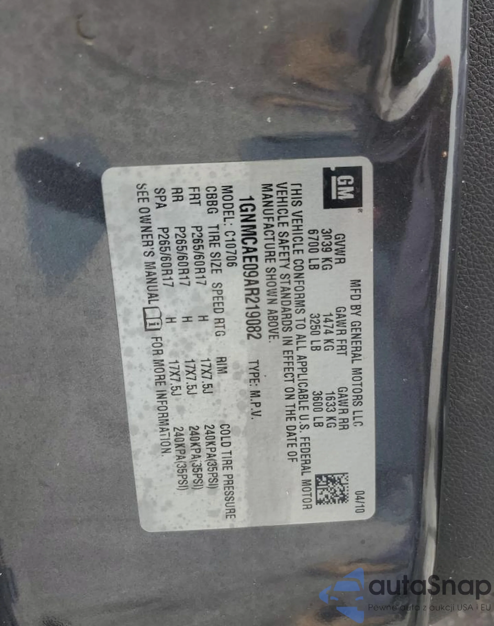 LOT: 82101645 VIN: WA1LGAFE5FD018474