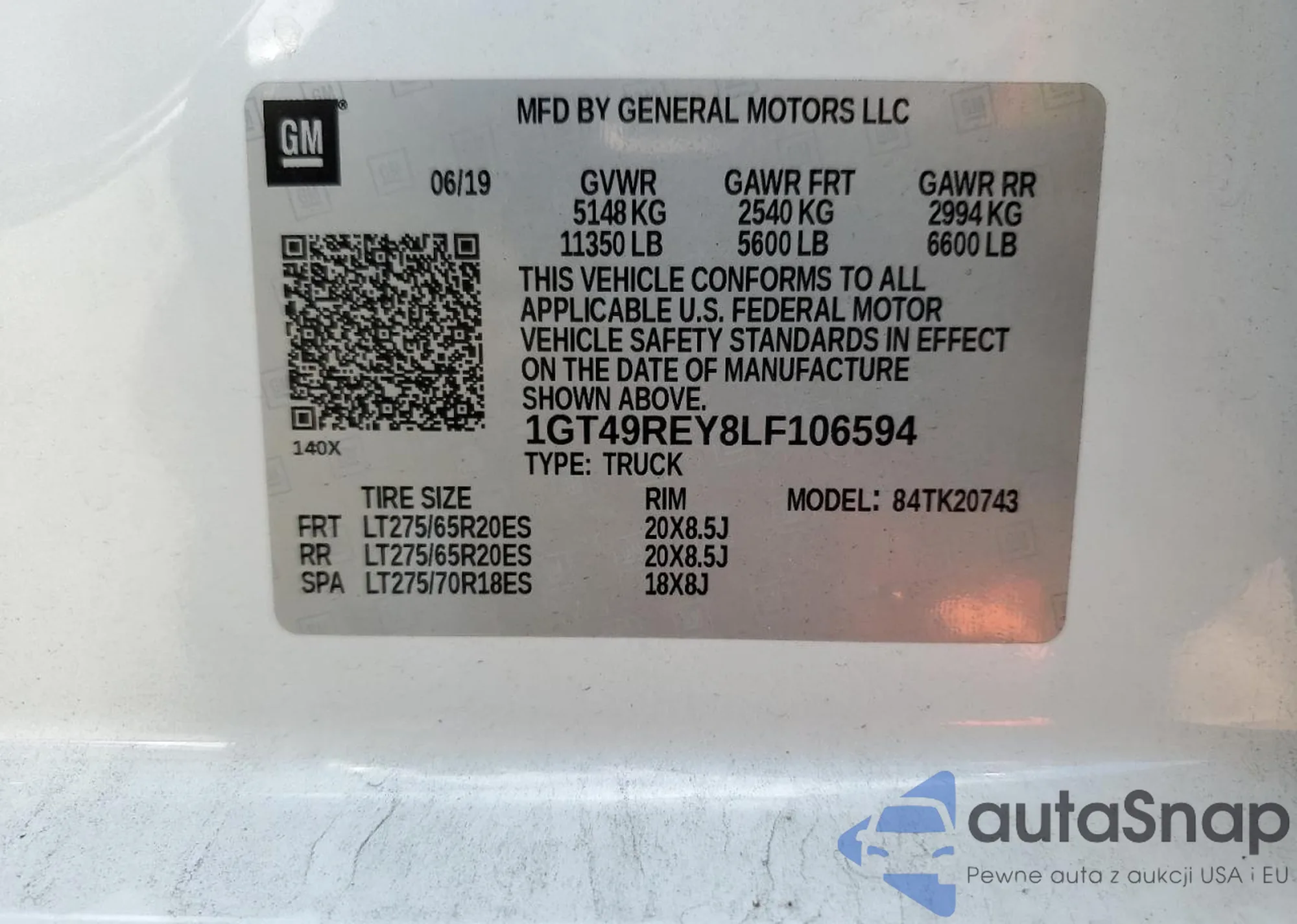 • VIN 1GT49REY8LF106594